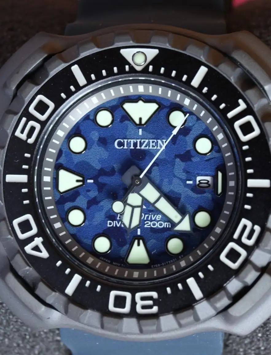 Citizen Eco-Drive Promaster Calibre 2100, un reloj de hace años y de sobra conocido. Durante años quise tener un Eco-Drive, y mi preferido desde mediados de los años 2000 que salió al mercado, era este, el Calibre 2100 panda. Desde que lo compré hace años ha seguido siendo mi Eco-Drive preferido, por el calibre tan especial y bueno que tiene, la estética, la sensación de reloj de calidad que me da, lo cómodo que es leer su crono, y cómodo el reloj en general a pesar de su tamaño y peso. El calibre es un calibrazo que se ha utilizado en Citizen Signature, ha servido como base a algunos Campanola, y se sigue montando en Citizen bullhead como el Tsuno. Un calibre compuesto por 294 piezas, de cuarzo solar con cronógrafo de 12 horas, alarma de dos tonos, indicador de nivel de carga en tiempo real, fecha y una construcción metálica con rubís y accionamiento, parada y reseteo del crono totalmente mecánicos. El avance de la trotadora es como en un cronógrafo mecánico, lo que se llama ahora mecaquartz, muy agradable de ver y usar. La esfera está muy elaborada, con varias capas, decoración al estilo côtes de Genève, y muy legible a pesar de ser un 9 agujas, mi reloj con más agujas. Que sea tan legible con tantas agujas y que sea tan cómodo con un peso y tamaño considerables, son la prueba del excelente diseño del reloj. El lumen es espectacular, aguanta la noche de sobra, y eso en relojes que tienen ya entre 15 y 20 años muchos de ellos; es el lumen azulado tan bonito de Citizen, y el detalle de la perla grande a las 12, en el eje de la aguja de nivel de carga, siempre me ha encantado, por la noche se ve preciosa y deja claro dónde están las 12. Es un reloj con mucha personalidad, como suele pasar con los Citizen. Para completar el cuadro, es un WR. 200m.
