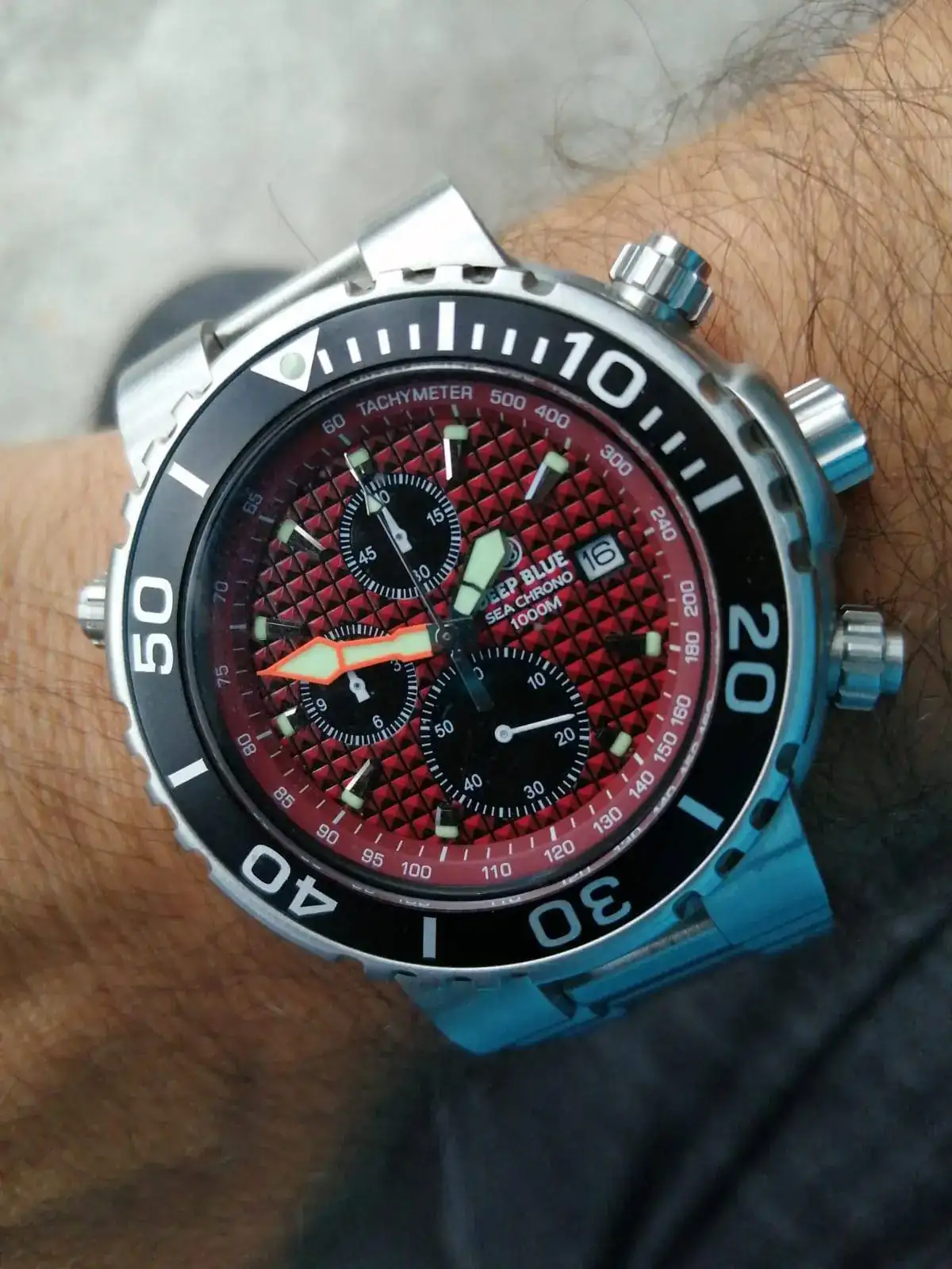 Deep Blue, vale cada euro que me costó (vino en un estado pristino del FCV con su 2da correa de caucho que no he llegado a montar) tras deshacerme de un precioso GANT de 1000 Mt demasiado grande para mi, tenía ganas de otro reloj del mismo tipo.