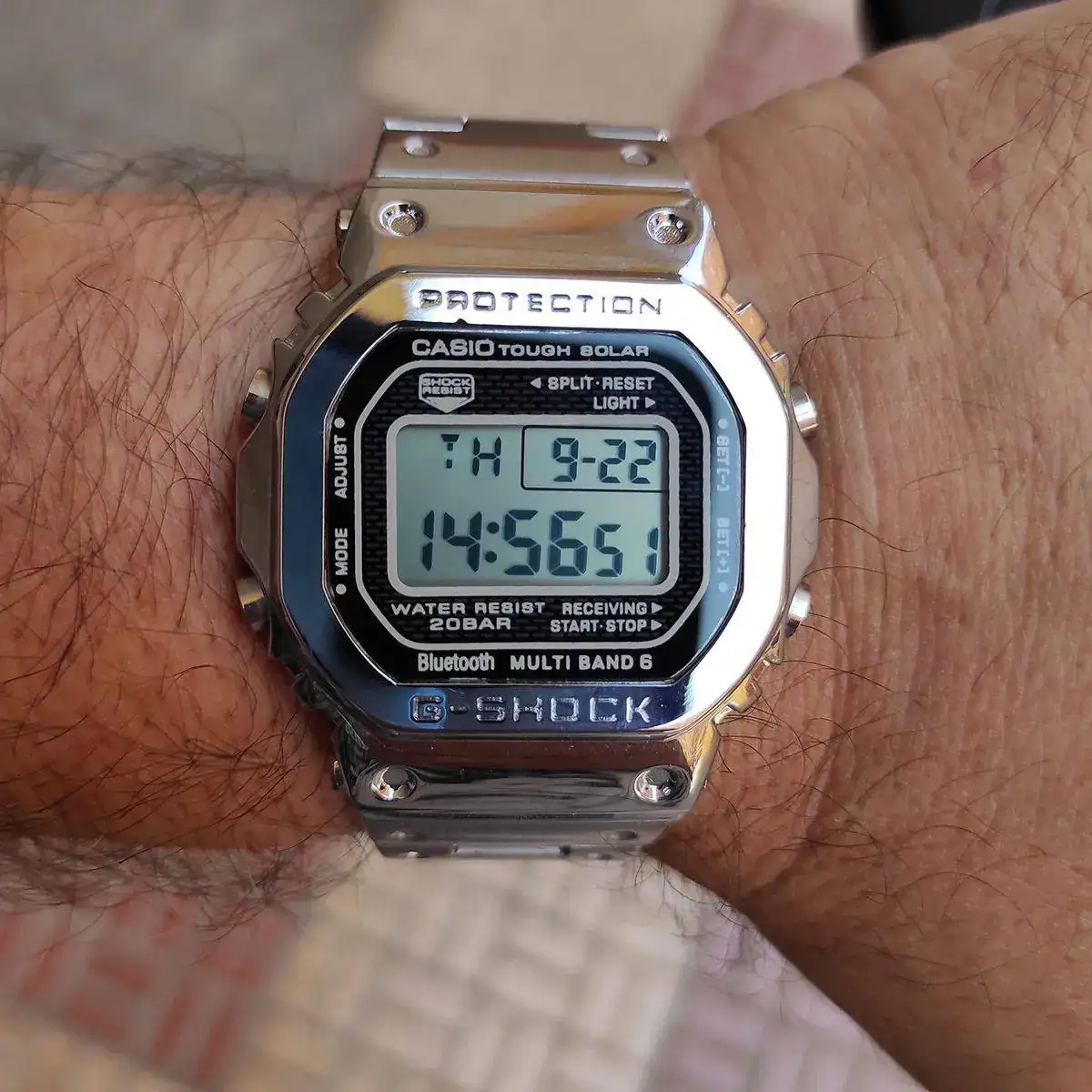 Y como vereis, en la esfera reza "Tough solar", "Bluetooth" y "Multiband 6". Si no tiene cuenta atrás, imaginad estas funciones (parece realmente la esfera de un GW-B5600BC o familiar).