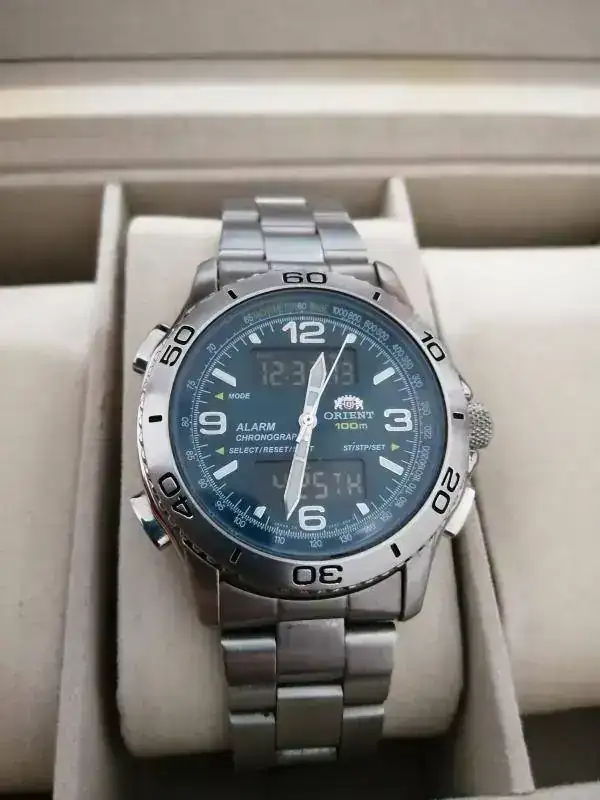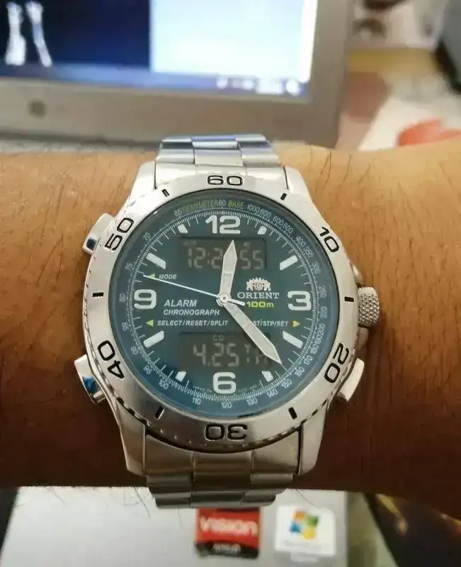 Feliz Con mi Orient Ana-Digi VZ00-01, acompañándome esta noche.