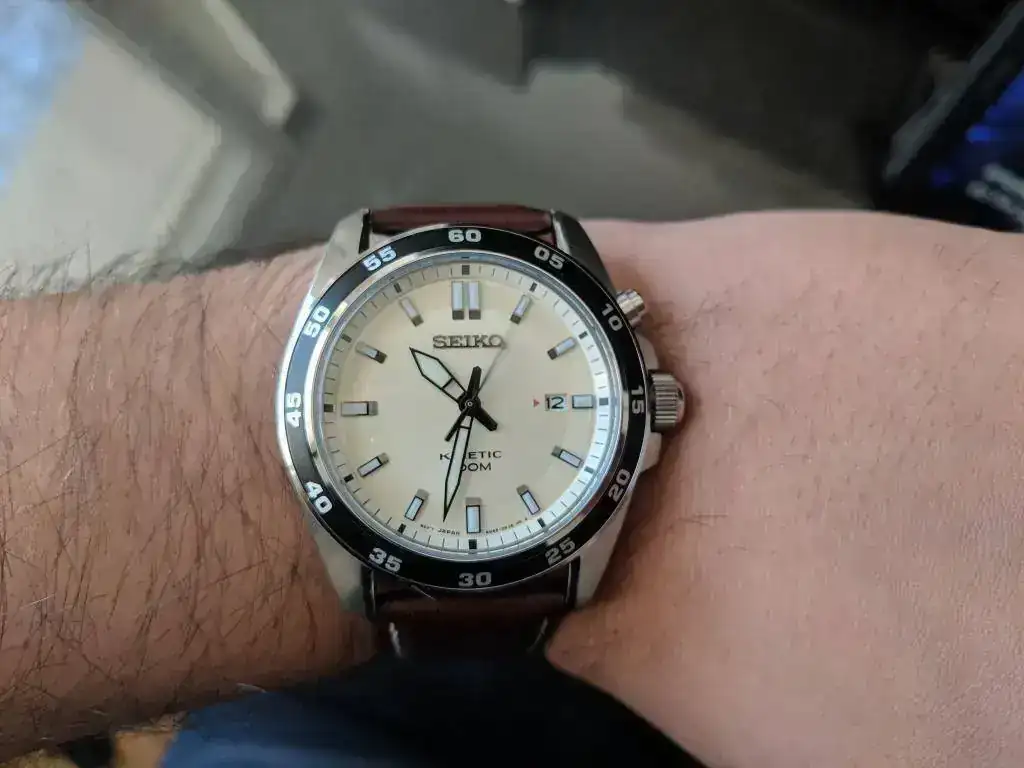 Y entra este precioso Seiko kinetic en beige y bisel negro