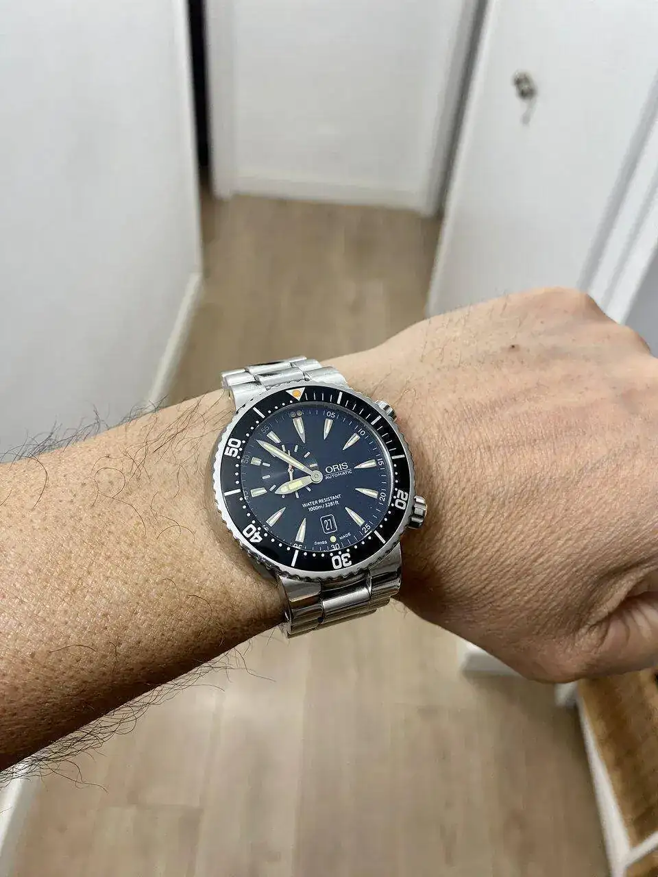 A continuación, Oris Aquis Small seconds de 45mm de diámetro y peso total de 250 gr. llevado con porte y elegancia como debe ser.