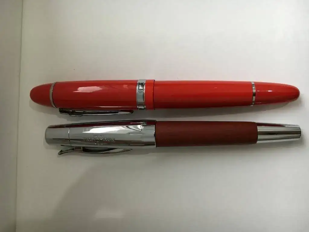 la he comparado con la Faber-Castell E-motion que es bastante grande en la parte del capuchón y aún así gana la china.