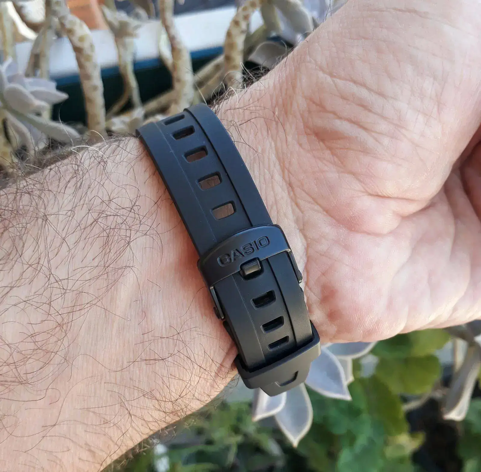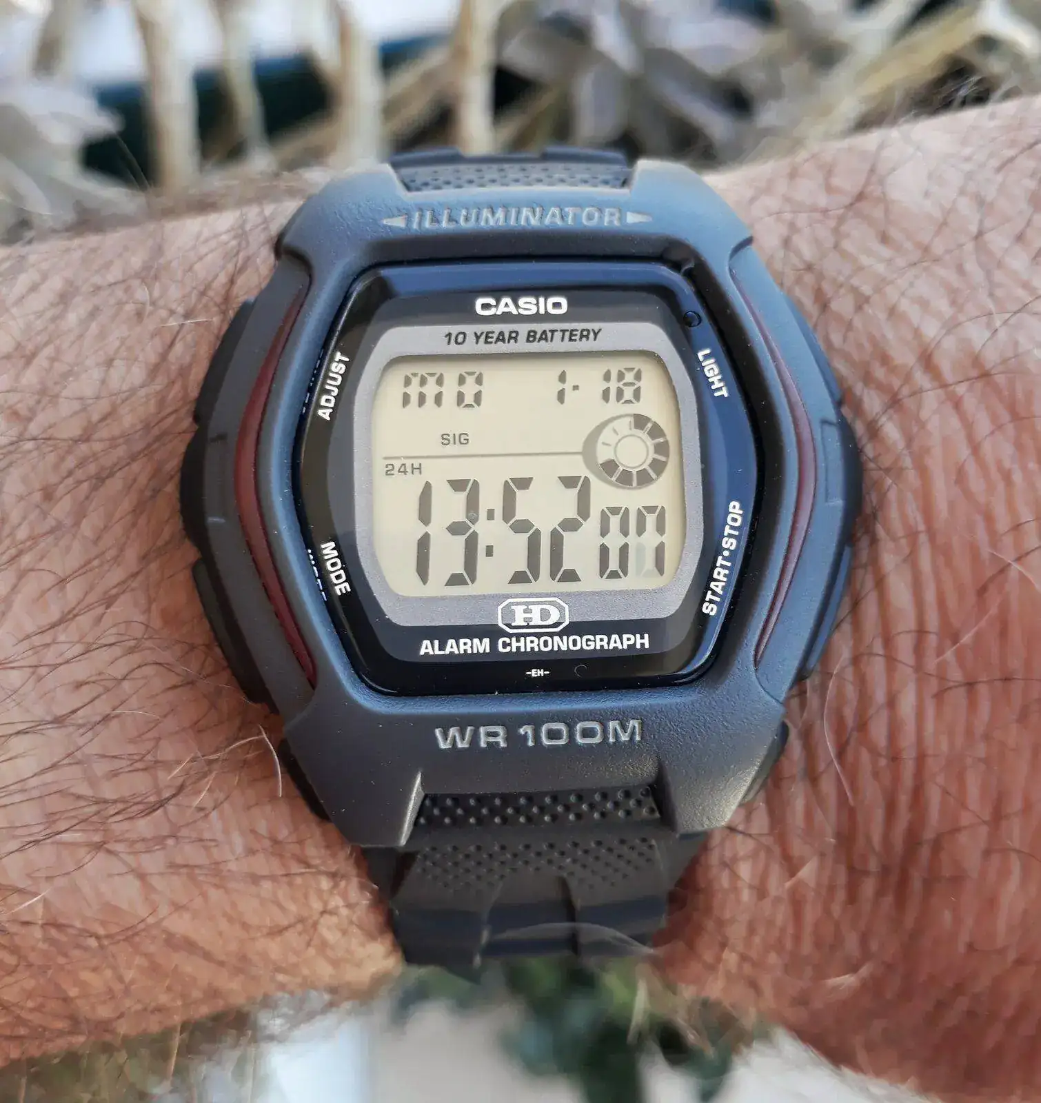 Hola feliz lunes para todos,hoy les comparto mi primera compra nueva de 2021,ya que la anterior era un Citizen a cuerda manual vintage que restaure'. Y este es un Casio HDD600 nuevo que compre por Internet en un excelente precio de oferta $2700 pesos argentinos,de alguien a quien se lo regalaron y no le agrado el modelo el precio normal de venta de esta pieza es de unos $5600 pesos argentinos,es un modelo de la serie HD de Casio es decir una gama intermedia entre un casio normal y un G-shok. Hace rato que buscaba este modelo o el MW600,conseguí este.la verdad pensé que era mas grande ya que tengo mas de 19cm. De muñeca se ve pequeño mas aun su correa de caucho es bastante delgada,es cómodo,con funciones muy básicas,resistencia al agua de 100mts.cristal de resina,caja en resina,liviano y parece ser una versión moderna del mítico F-91W,lo compre por su precio ademas de querer tener otro reloj para darle batalla. Pero entre este HDD600 y un AE1000W me quedo con el segundo mucho mas completo y gran tamaño. Veremos como se porta esta pieza en robustez para batallar en salidas al aire libre.