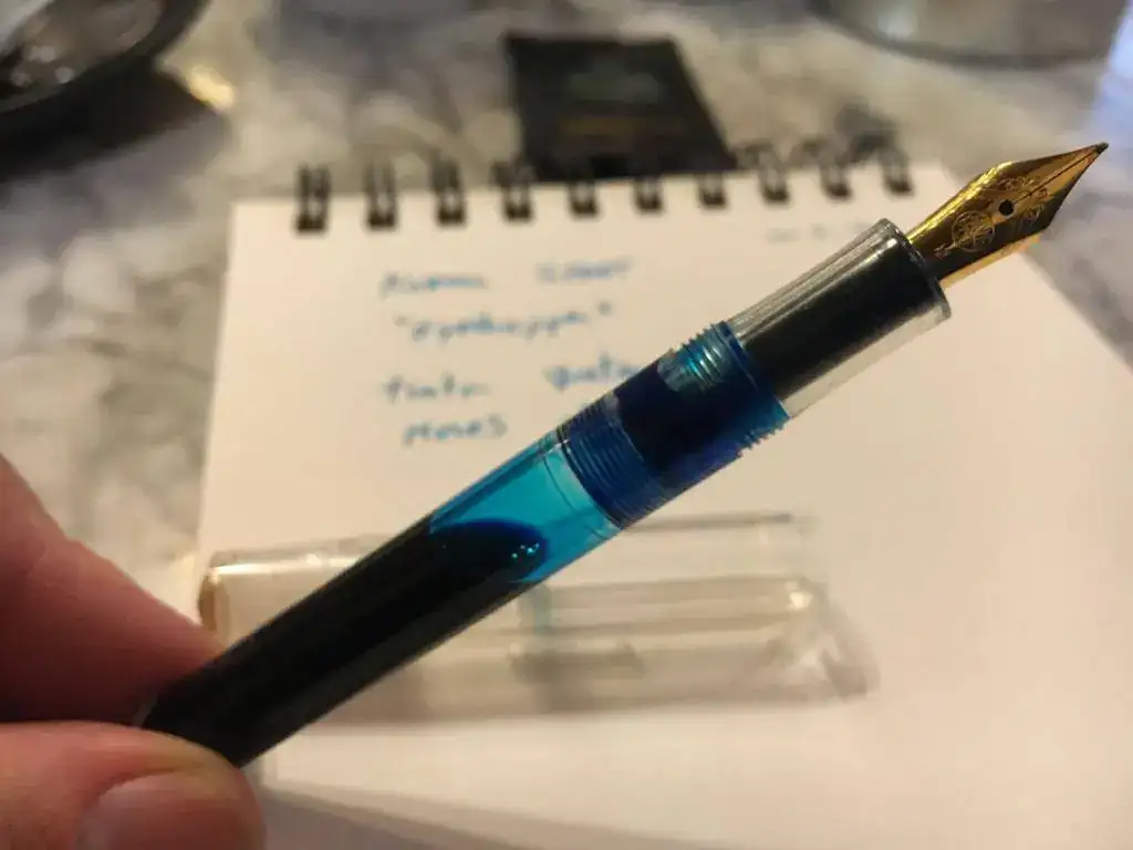 Hoy he comprado una con la idea de convertirla en una eyedropper a lo bruto. Como dicen algunos compañeros, un poco de nívea el la rosca i medio litro de tinta en el barril y a correr. La verdad es que tienen un plumin muy suave que aún siendo M no es muy húmedo.