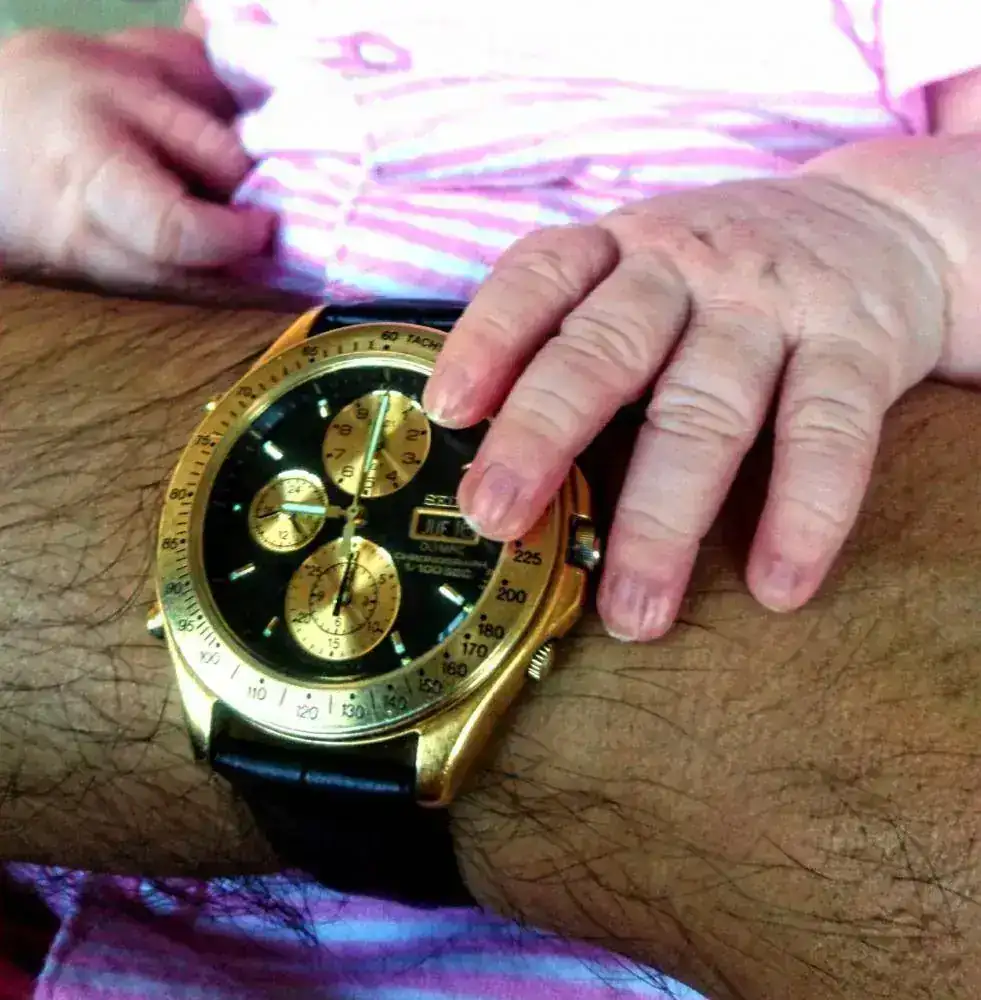 He querido fotografiar las primeras horas de vida de mi niña en un reloj que mide tanto la fecha cono las milésimas de segundo. Mi cronógrafo más exacto que mide 1/100.