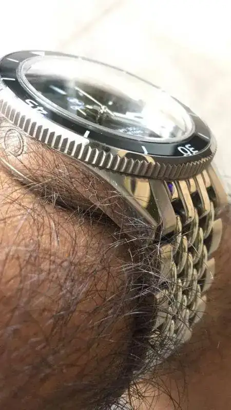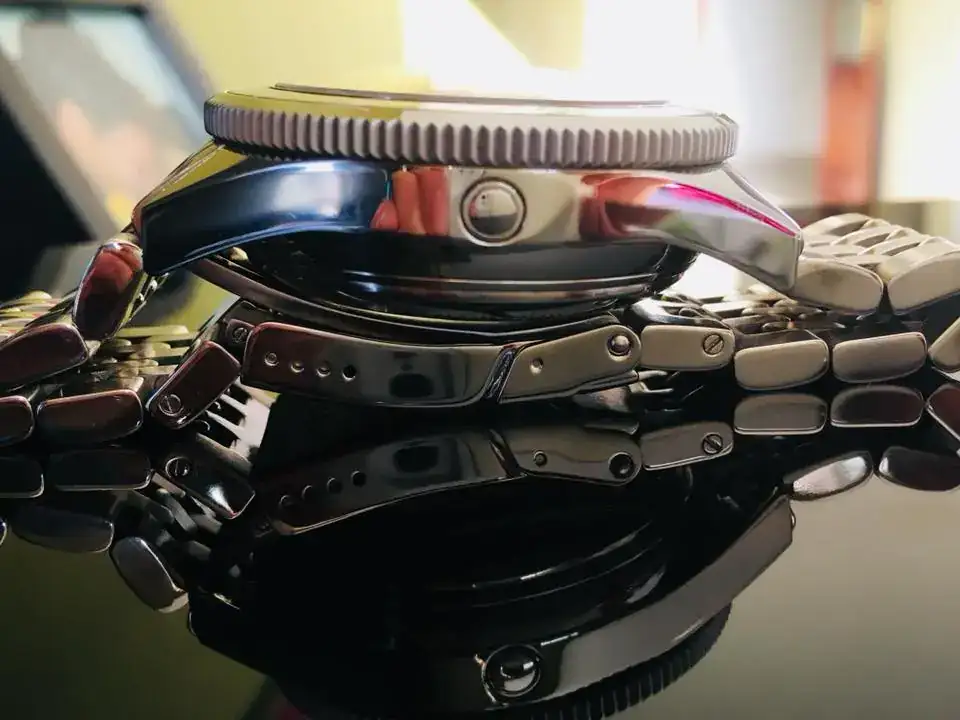 es un reloj grande y brilloso y mas llevando su armis, osea que es muy llamativo, es pesado pero asi me gustan, alto? tambien