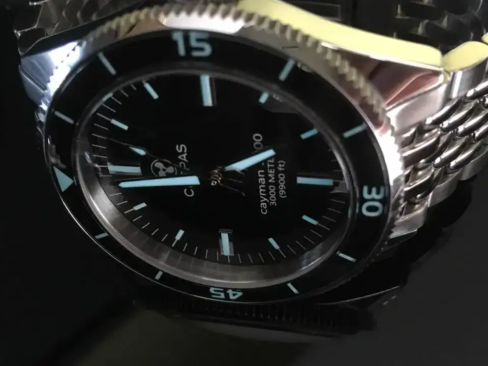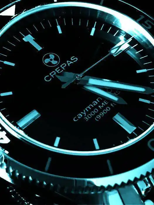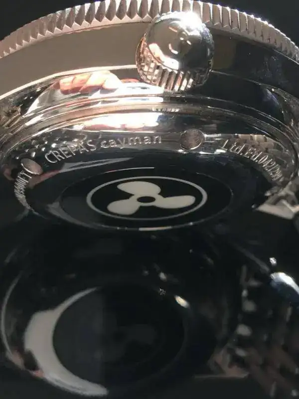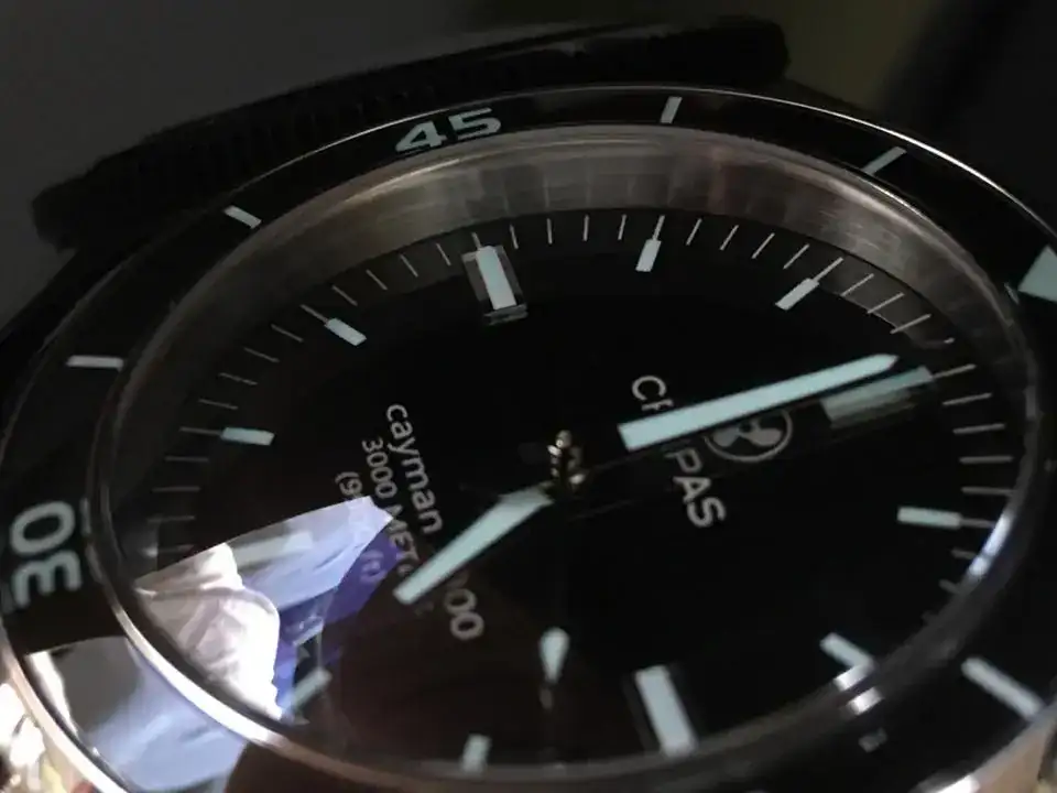 el detalle del logo trasero con lumen del Cayman me gusto mucho, es mu personal, siempre nos quejamos que casi todos los movimientos decorados sn solo para disfrute del relojero a no ser qu etenga tapa descubierta, este la tiene cubierta pero puedes ver ese logo iluminarse en celeste, una tonteria para algunos pero un detalle que se agradece,el lumen es como un seiko o el orient pro