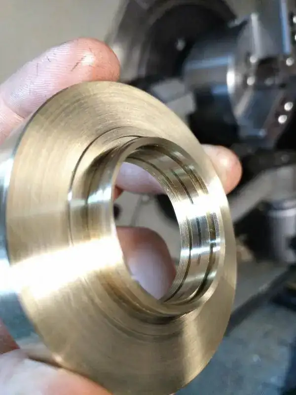 No tenía claro si subir estas fotos o no, es la primera fase de tornado de la caja y todavía no se distinguen las formas. Esta primera fase es de torno, se ha mecanizado el interior; el alojamiento y los encajes para el calibre y la bata, la rosca y los encajes para el bisel. También se ha rebajado de material lo máximo posible para facilitar la segunda fase con la fresadora. Como decía no tenía claro si subirlas y esperar a tener toda la caja ... pero es que el color de este bronce me tiene ..