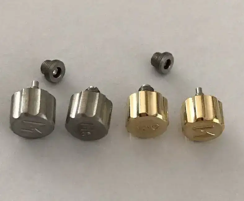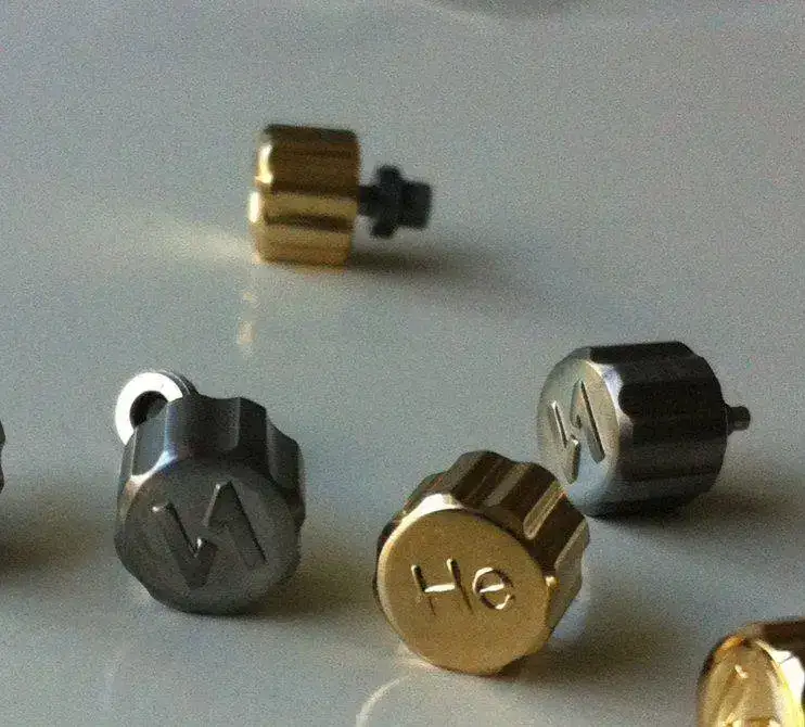 Ya tenemos por aquí las primeras muestras, en este caso las coronas y también las barras de material, el bronce. El titanio esta tardando más de lo previsto pero me han confirmado que la semana que viene nos lo entregan. De bronce hemos pedido 10 tacos de 72mm para hacer las cajas y una barra de 47mm para los biseles.