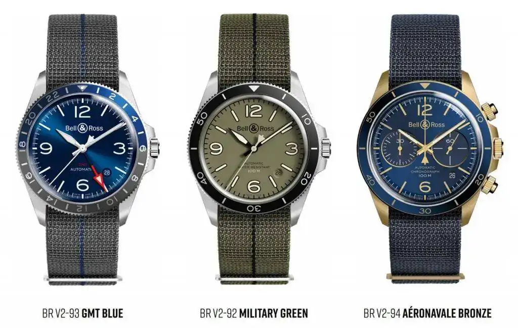 Bell & Ross presenta este año tres relojes que evocan sus tres territorios de expresión: el mar, el aire y la tierra. Los tres están animados por un movimiento mecánico suizo de carga automática y equipados con una correa «NATO Stretch» dotada de un práctico sistema de cierre y confeccionada a partir de cinchas de paracaídas.