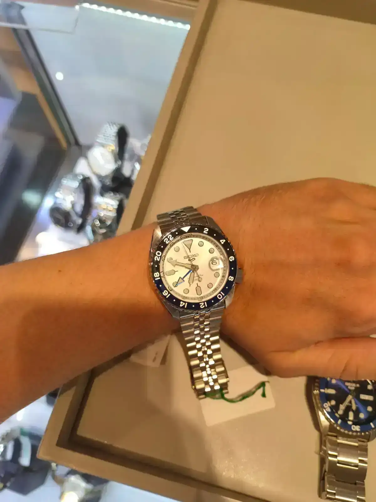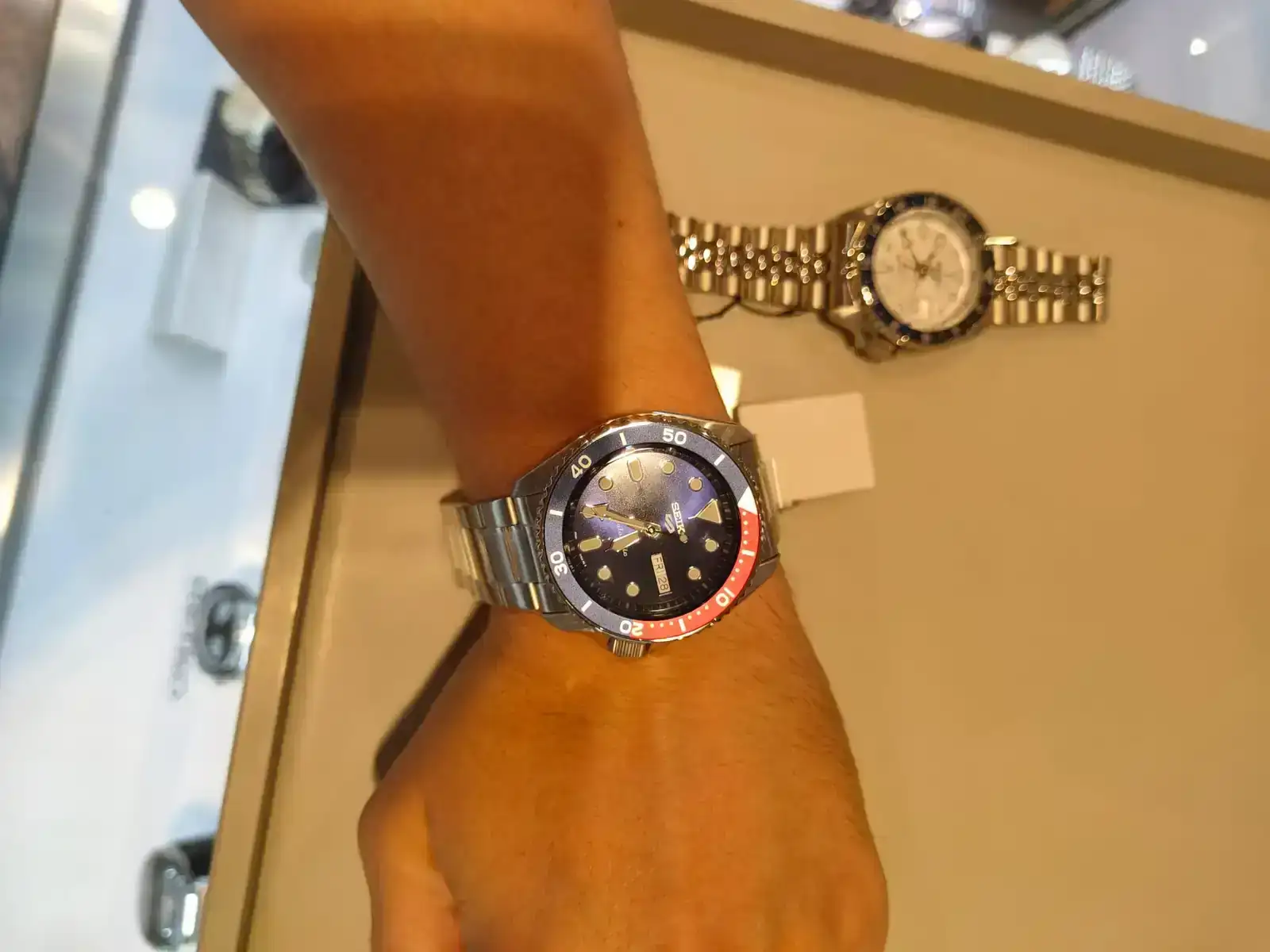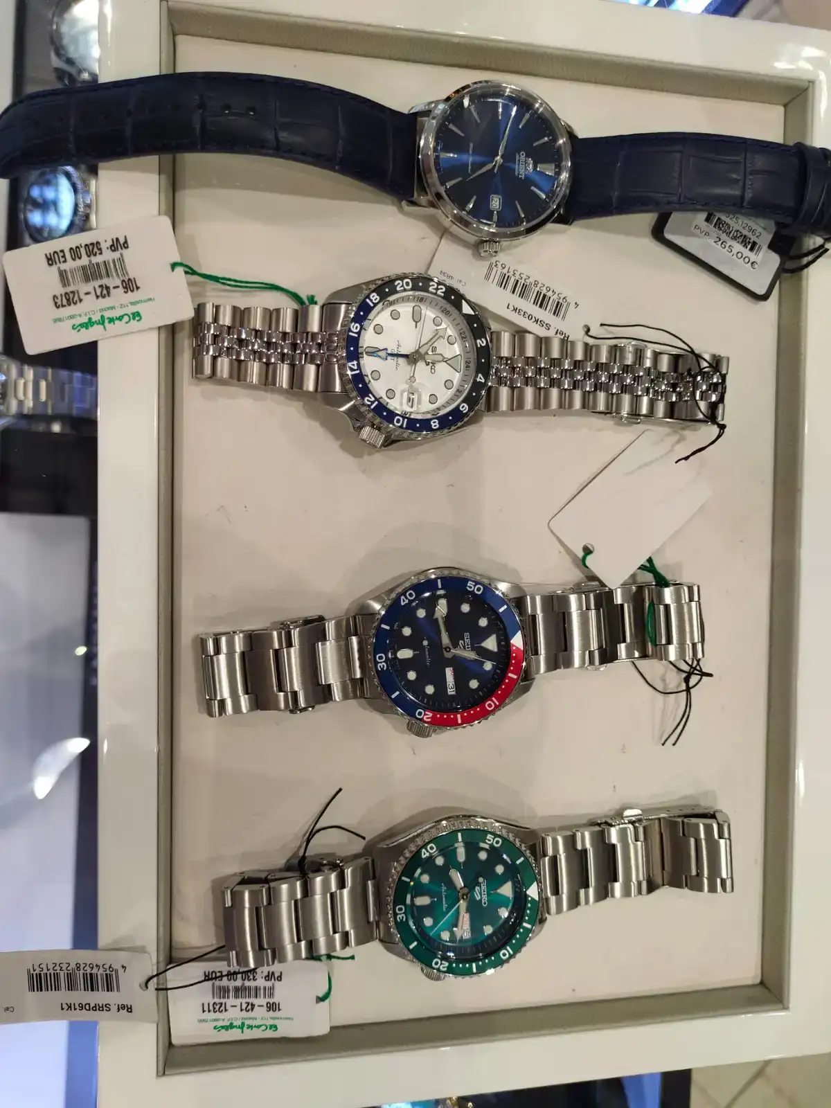 El que me lleve a casa supercontento fue el Seiko 5 sports pepsi, que me salio a 263€ nada mas. No me pude resistir por ese precio pero, me gustaban todos en realidad, y de eso os culpo de ponerme los dientes largos con cada post de relojes.
