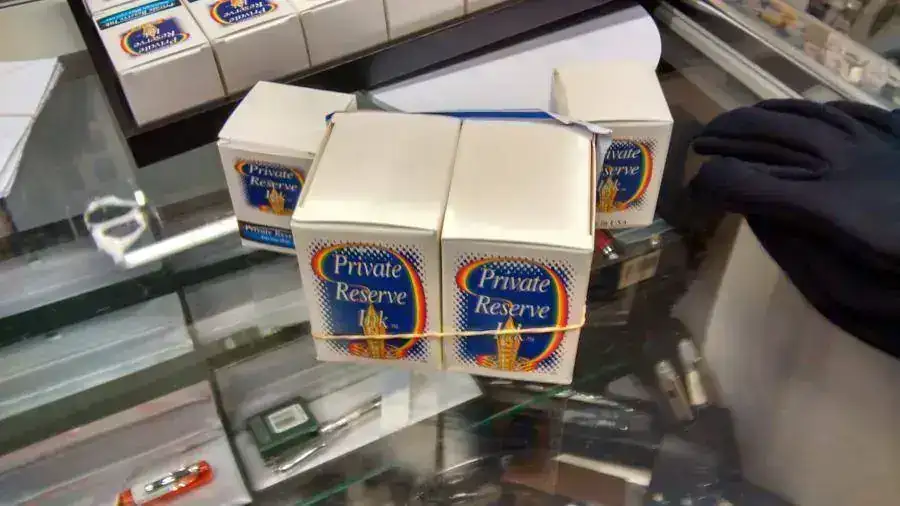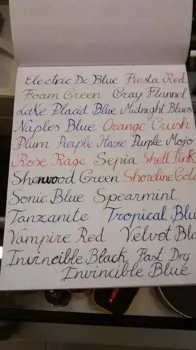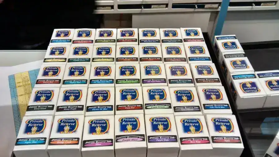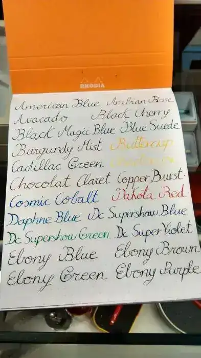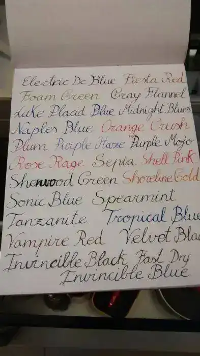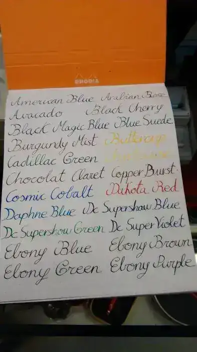 , los tinteros de 110 ml no se ven Europa y de hecho yo no sabia que existian, a mi me los ofrecio Carlos de la Estilografica Moderna y logicamente los reserve, le comente lo buenas tintas que eran y concretamente vio mi Ebony Green y Ebony Blue compradas en el sueco, no me esperaba que si hiciera con la carta completa, desde las Inviolables (el Azul es una pasada), las Fast Dry y las series normales, hay dos colores nuevos que los tengo apartados...ya que a todo no se puede llegar.
