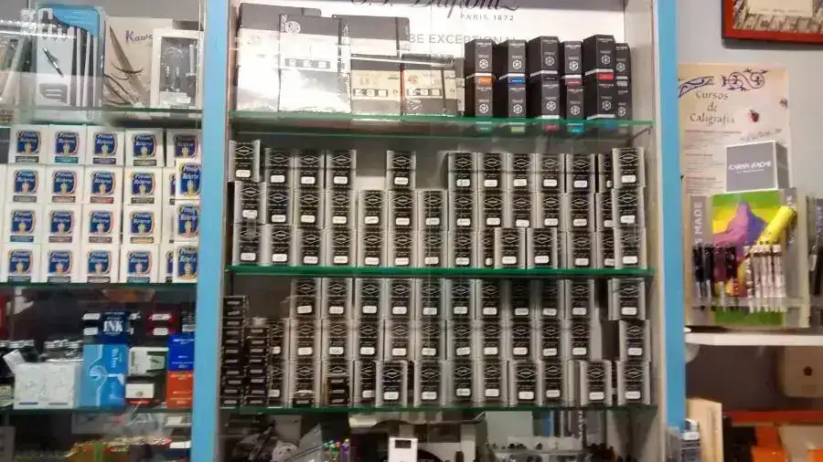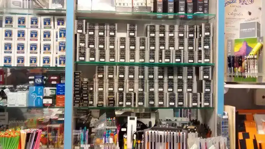 Os dejo la muestra de tinta que el mismo ha hecho para mostrar a sus clientes, yo las puedo probar in situ asi se cual llevarme, aproveche para que veáis parte de sus tintas, gran parte de ellas ha sido por mi capricho y comentarle de marcas, asi fue trayendo poco a poco desde las Iroshizuku cuando en España no se vendían, las Platinum y las Diamine las cuales eran difíciles encontrar en tienda física, allí podéis ver también la carta de Caran y los de Graf Von Faber Castell, estos últimos ya la tengo echado el ojo a un par...