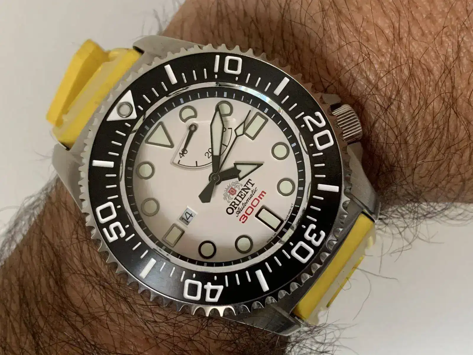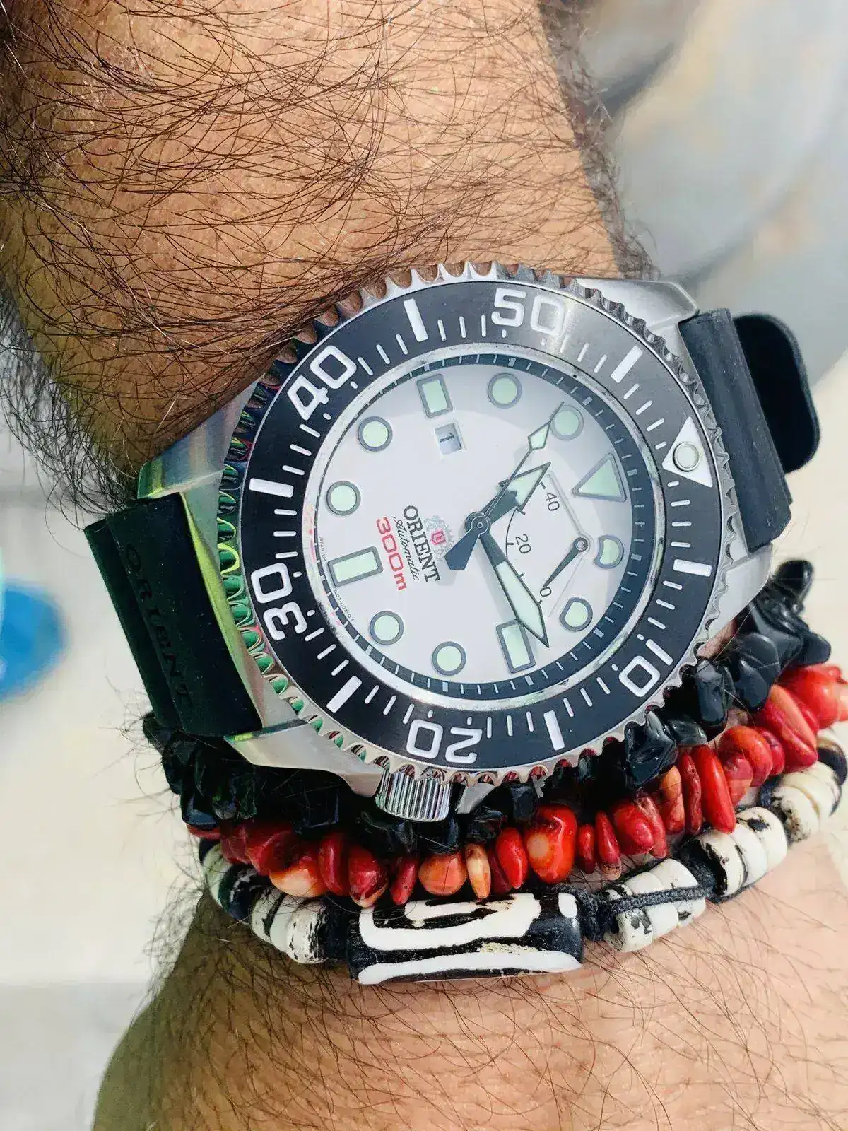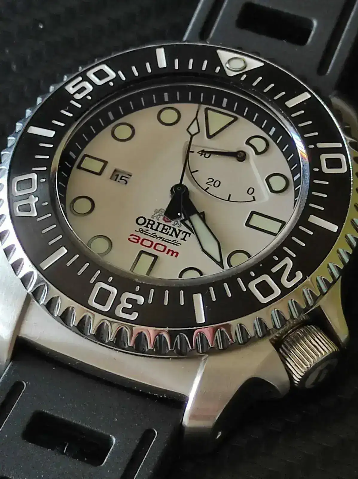 A disfrutarlo como merece! Yo tengo el negro y la única razón por la que dejaría de tenerlo es porque consigo cambiarlo por un blanco, como el tuyo. Enhorabuena!El modelo top de la casa Orient. Tuve tres anteriores. 2 En negro y 1 rojo Y el blanco siempre fue el que quise. Gracias a un amigo que me paso el suyo de re estreno, puedo disfrutarlo ahora. Como curiosidad he notado luego de que se descatalogue. Una notable subida de precios y demanda del mismo