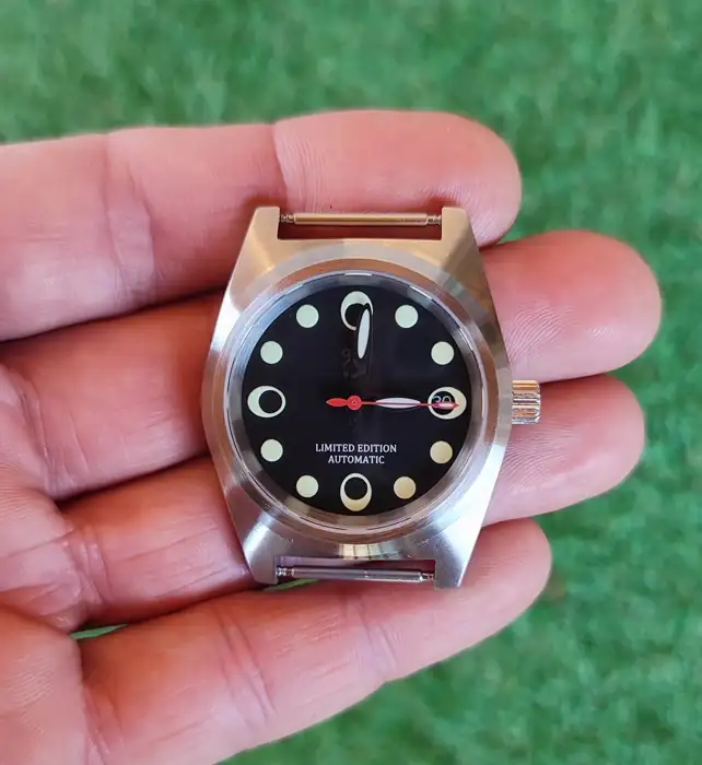 En fin, me llegó la caja pero no el dial y agujas que había pedido para ella, así que provisionalmente le puse un dial que ya he probado en varias cajas sin acabar de decidirme.