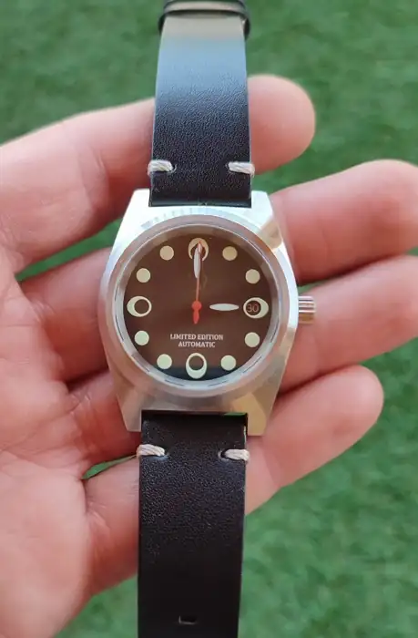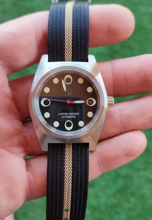 Bueno y aquí acaba todo!! a la espera de que llegue la esfera con las agujas que pedí para el y a ver si me gustan mas que estas, en definitiva un reloj de 38mm. de diámetro, diez y medio de grosor, corona y tapa roscadas, zafiro con antireflejos algo escaso, sencillo, de tamaño comedido y muy portable.