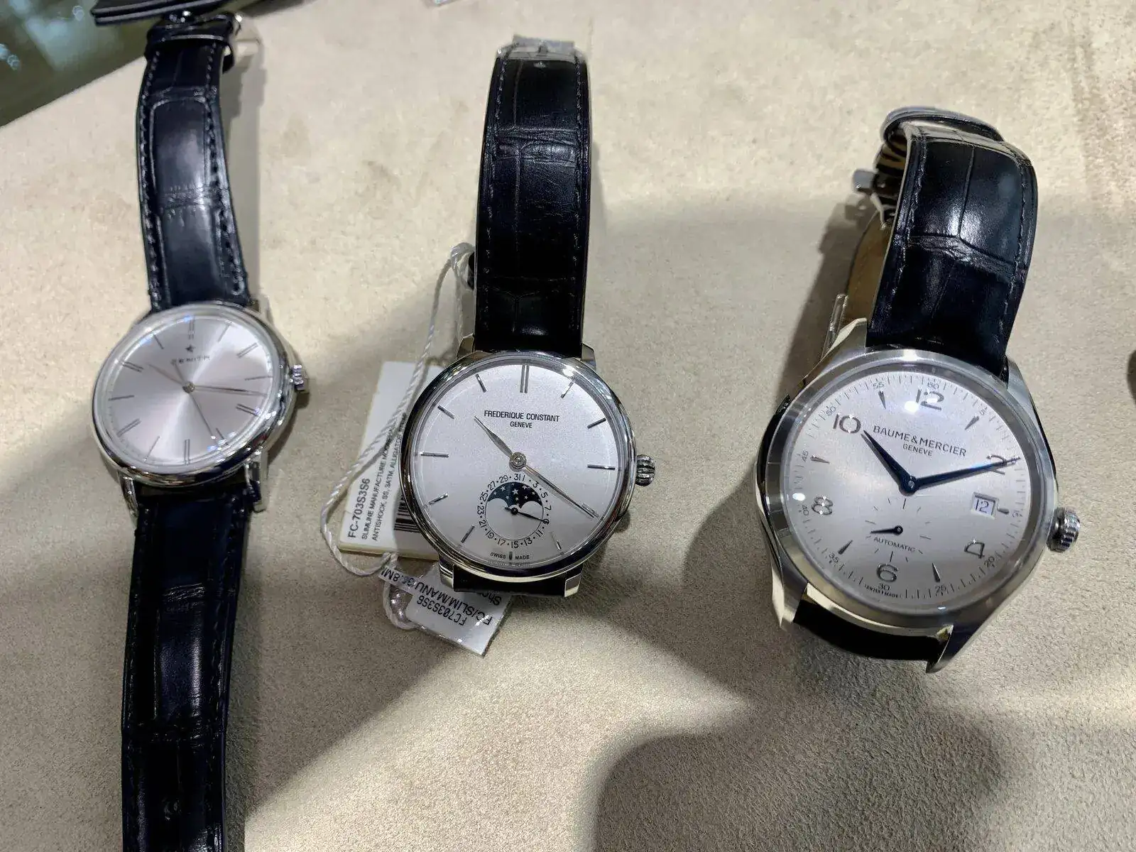 Os dejo algunas fotillos. También de los que vi para mi padre, a ver qué os parecen(Zenith, Frederique Constant y Baume & Mercier).