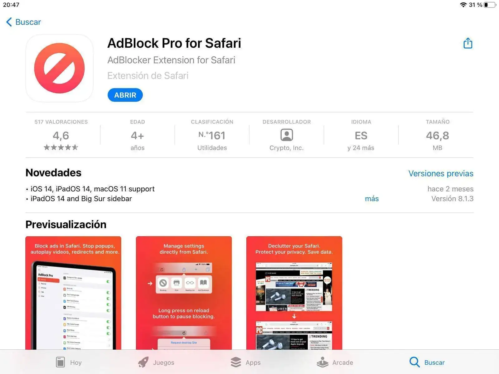 Como veía claro que el problema eran los anuncios, me ha dado por bajar una app del appstore, “Adblock Pro for Safari”.