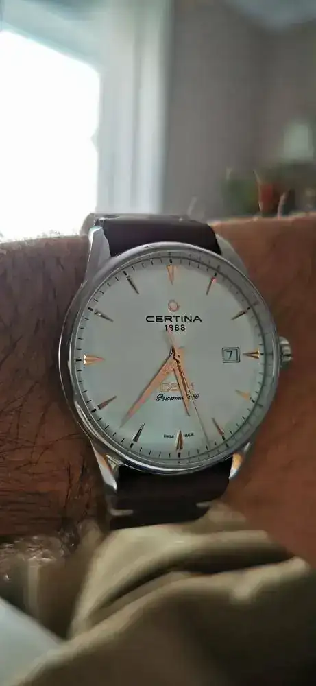 Bueno compañeros, reflotó el hilo con respuesta por parte del SAT, ( os recuerdo, dos meses fuera de garantía ) 62 euros me van a cobrar por cambiarle las agujas , a un reloj que cuesta más que un frigorífico , con 20 puestas contadas en 2 años y dos meses, y que os puedo jurar, ha estado super mimado y no ha visto el agua ni en una foto. No nos olvidemos todo un DS ( doble security ( referente histórico en cuanto a resistencia y hermeticidad) a prueba de bombas y pitos y flautas. Decepcionado es poco, primer y último Certina que pago . Un saludo.