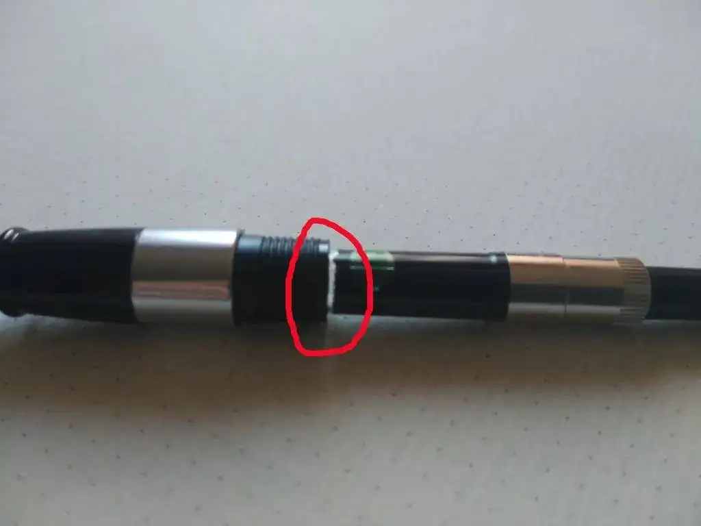 Adjunto una foto en la que, aunque está en horizontal, se ve, resaltado en rojo, que hay un espacio de aire, como si hubiera una película que no deja llegar la tinta al plumín.