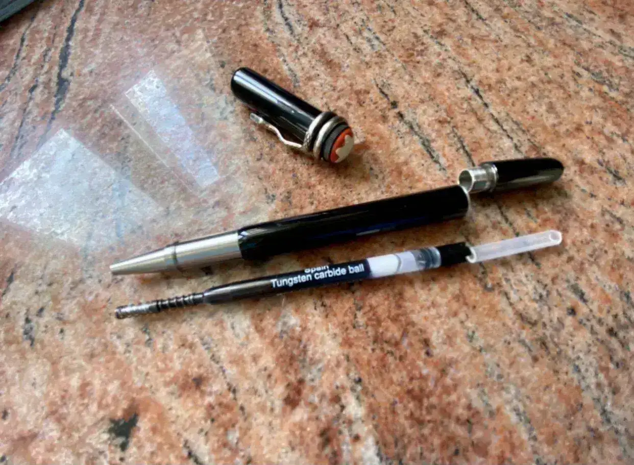 Tengo un Montblanc starwalker desde hace un año y los recambios me duran nada. El último lo abrí el 31 de diciembre y ya se me ha gastado sin casi haberlo usado. (los primeros si que me duraron unos 3 meses)