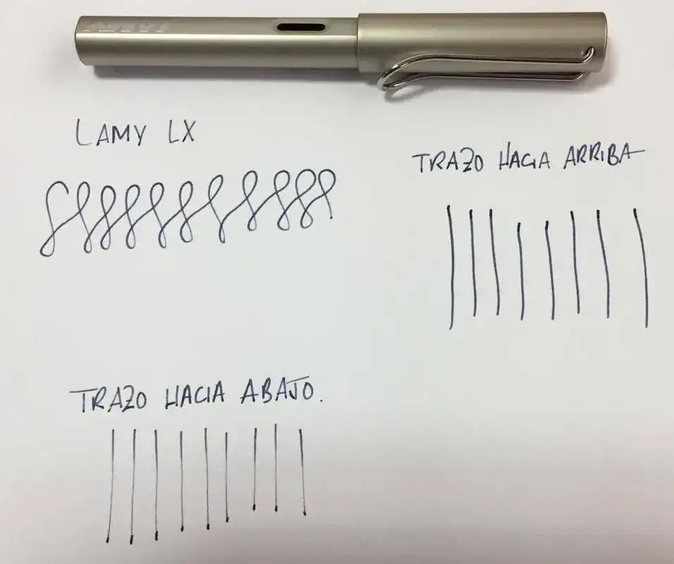 El asunto es que cuando escribo, el flujo de tinta es normal hasta que hago trazos en vertical hacia abajo. En ese momento disminuye considerablemente el flujo hasta el punto de que casi se pierde por completo, pero, sin embargo, si el trazo es hacia arriba, izquierda o derecha, se normaliza.