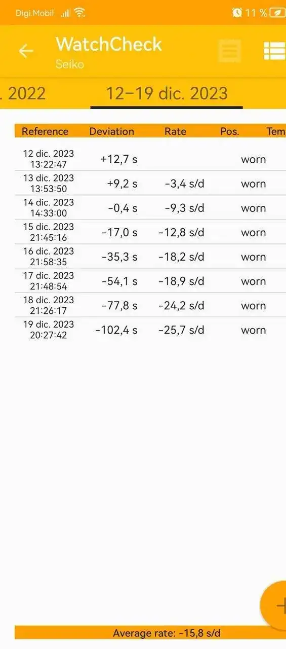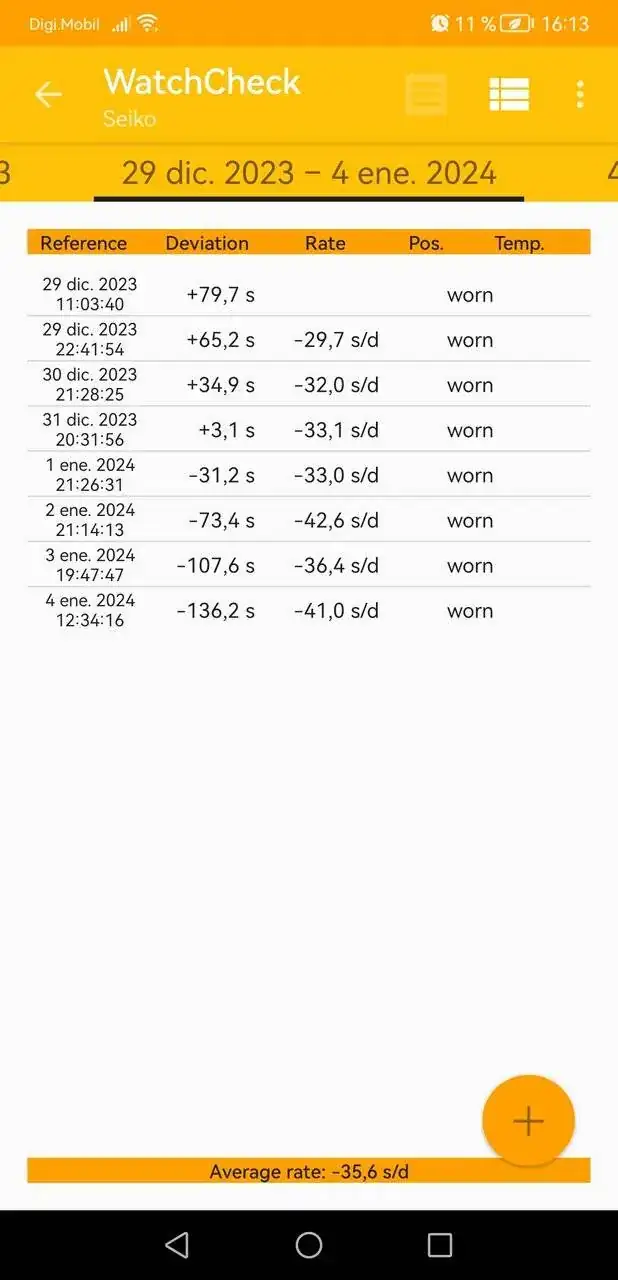 Voy a pasarte una gráfica de un Vintage de cuerda manual que va clavado y en la app pone que tiene desfase...... Se puso en hora el día 26 de diciembre, es cuerda manual. Imagen de comparación con reloj gps