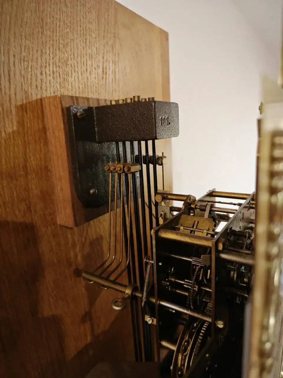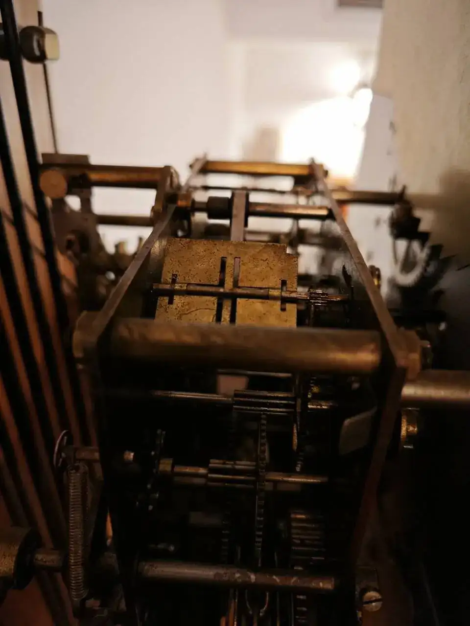 Resumo, carrillón que ha estado abandonado en un trastero varios años e iban a tirarlo, cómo comprobé que funcionaba decidí intentar restaurarlo. Le faltaban las cadenas de la sonería y tenía algunos daños en la parte superior correspondiente a las fases lunares seguramente por golpearla al quitar la parte superior que es muy pesada.