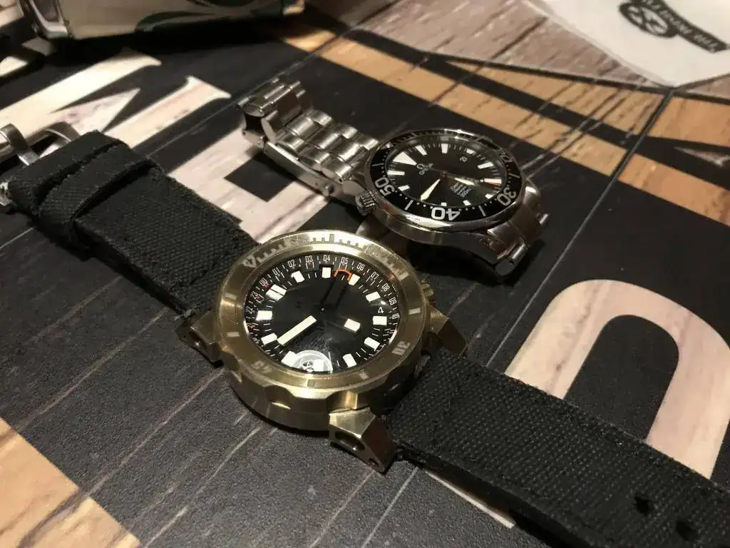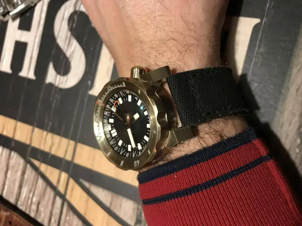 Lo primero que quiero desmitificar es el tema del tamaño. En todas las fotos parece enorme y aparatoso. Y la realidad es que es un diver de 43 un poco alto pero bastante facil de llevar.