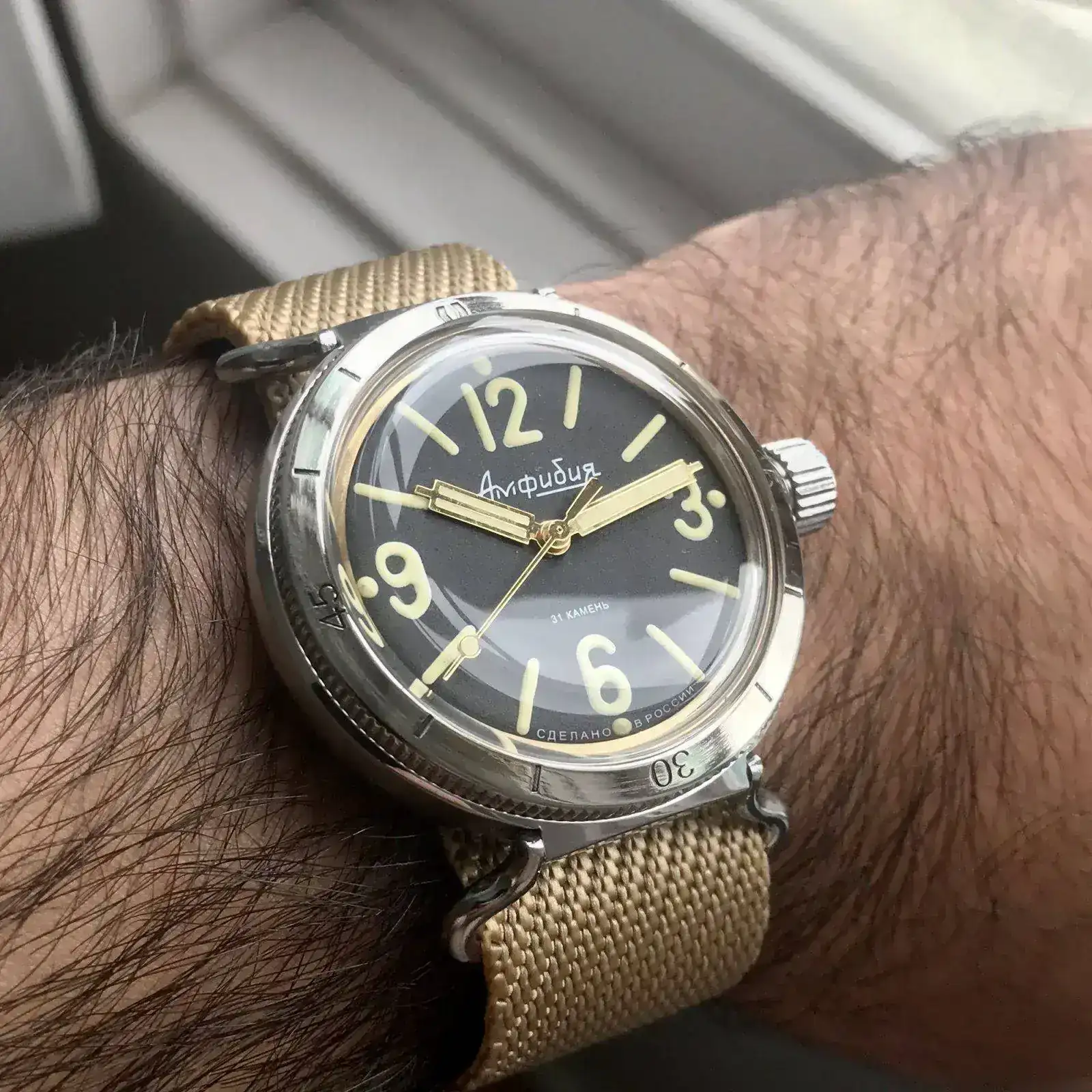 Tengo la suerte de tener la última reinterpretación (mejor llamado que reedición, creo) del NVCH-30, comprada por suerte en Meranom, y para las asas curvadas de ese reloj una correa como la que se propone (con las letras en rojo, muy llamativas) queda muy bien en foto, pero en la muñeca las asas curvadas con ese tipo de correas tienden a plegarse hacia adentro, no quedan extendidas, mostrando el reloj todo su esplendor, así que ese tipo de correa en mi opinión no es la más apropiada para el NVCH-30. Sería más adecuado buscar una correa que al poner el reloj en la muñeca "estirase" las asas hacia afuera. Pero es complicado encontrar un diseño que "agarre" las asas y las tense cuando se pone el reloj en la muñeca.
