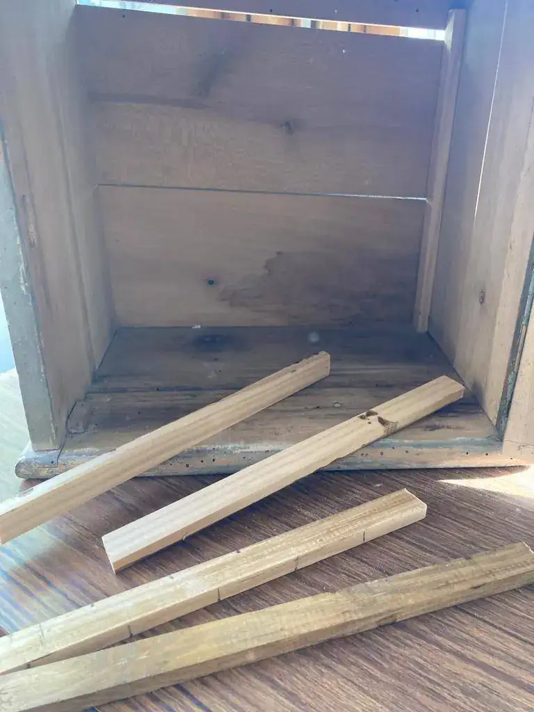 El siguiente punto, ya fue proyectar como lo podía convertir en una caja de relojes, pero de forma poco invasiva y además que siempre fuera posible deshacerlo, preservando al máximo la integridad de la caja original. Lo que suponía no clavar ni adherir nada a la misma. Así que opté por una estructura soporte de cajones que encajara con el interior de la original.