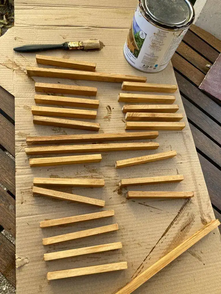 En medio de estas tribulaciones, acude la familia al rescate (mujer y niños) y me dicen que hagas unos separadores en madera, pero antes los forre con un tejido de lana, unos retales, recuperado en el mismo desván.
