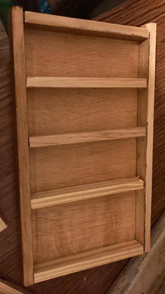 Para luego darme cuenta que quedaba demasiado estrecho, así que a deshacer y pasar a solo 4 estantes.