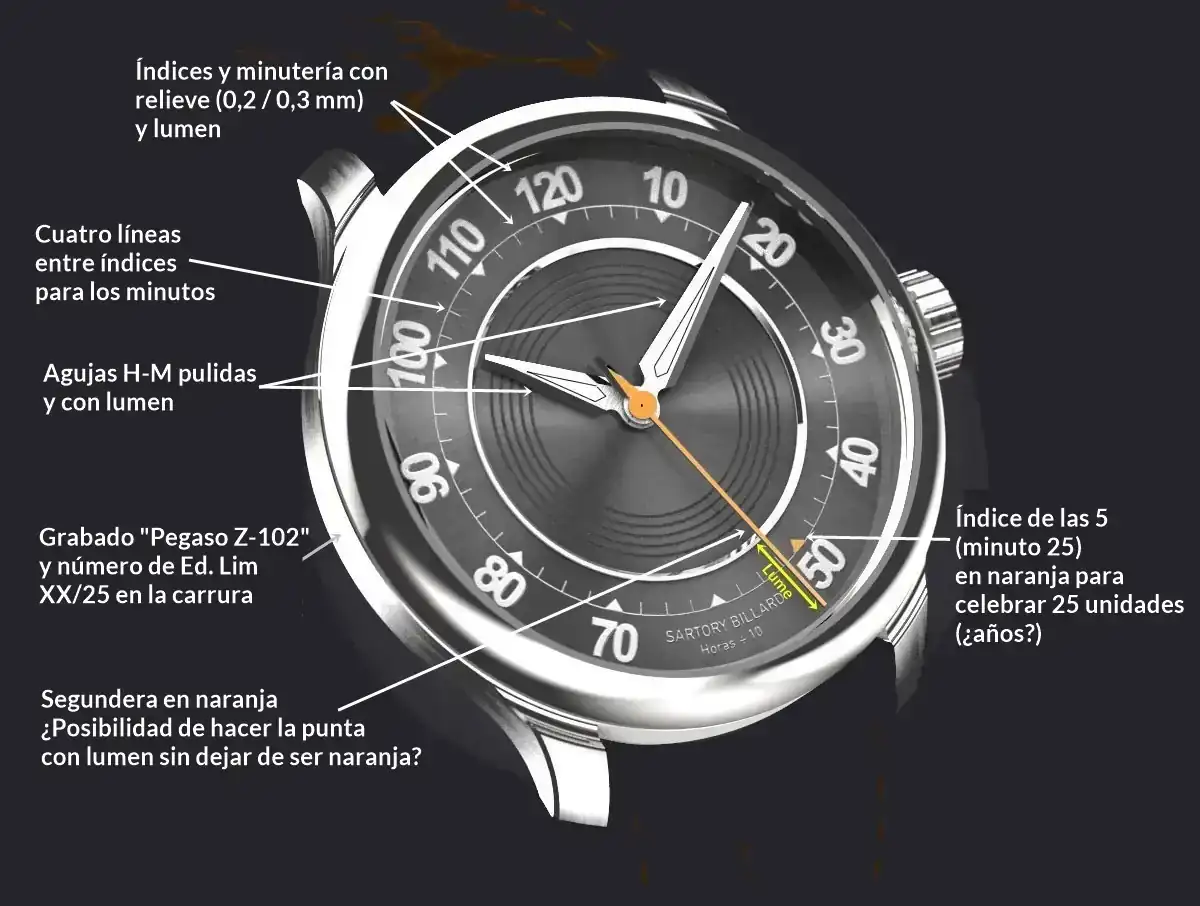Con 25 unidades podemos poner o quitar correas, pero no dar opciones de color de esfera. Además, No hay ningún Pegaso Z-102 con los contadores azules¿Al final habrá opción de diferentes colores de esfera? Me parece que en azul quedaría precioso