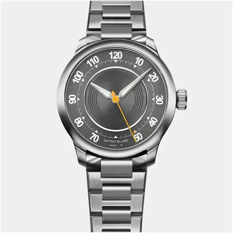 Precisamente porque para mí elegancia tiene que ver con sencillez apliqué el 'menos es más' en el tema de los círculos, algo que desde luego es opinable. Las agujas serán esas y no otras sencillamente porque S-B no me da alternativas, como ya comenté. En cuanto al lumen, he decidido dejarlo porque no quiero perder funcionalidad, y quitarlo de las agujas obligaría a soluciones tipo 'lumear' de alguna forma el disco interior de la esfera que no me convencían.-La esfera me gusta mucho mas la que su parte central es de circulos radiales entera y no solo un tramo. Mucho mas.