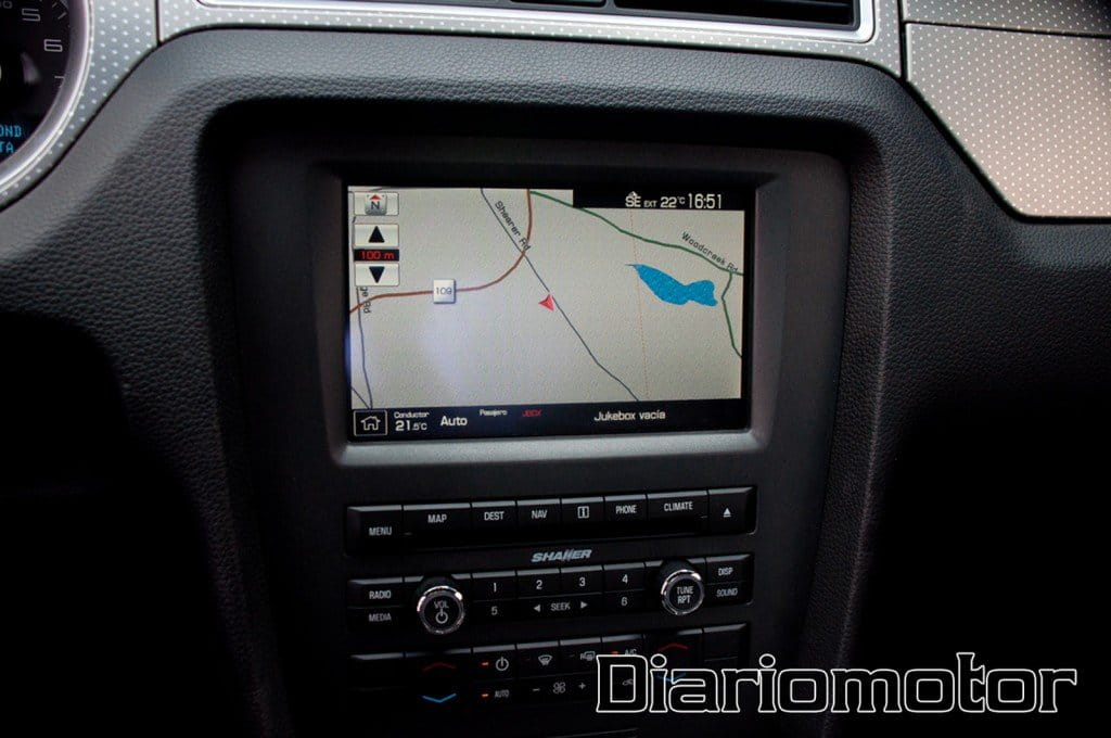 El diseño del salpicadero es atrevido con lineas angulares y de una calidad que no hace justicia a la mala fama que tienen este tipo de coches americanos. Los plásticos son de una consistencia más que aceptable y el motivo de lunares que presenta la zona central del salpicadero resulta agradable a la vista. El pedalier deportivo tiene una buena distancia entre pedales, estando el acelerador a una distancia del freno apropiada para hacer la maniobra de punta-tacón, pero con la separación suficiente para que no accionemos los dos a la vez de forma accidental.