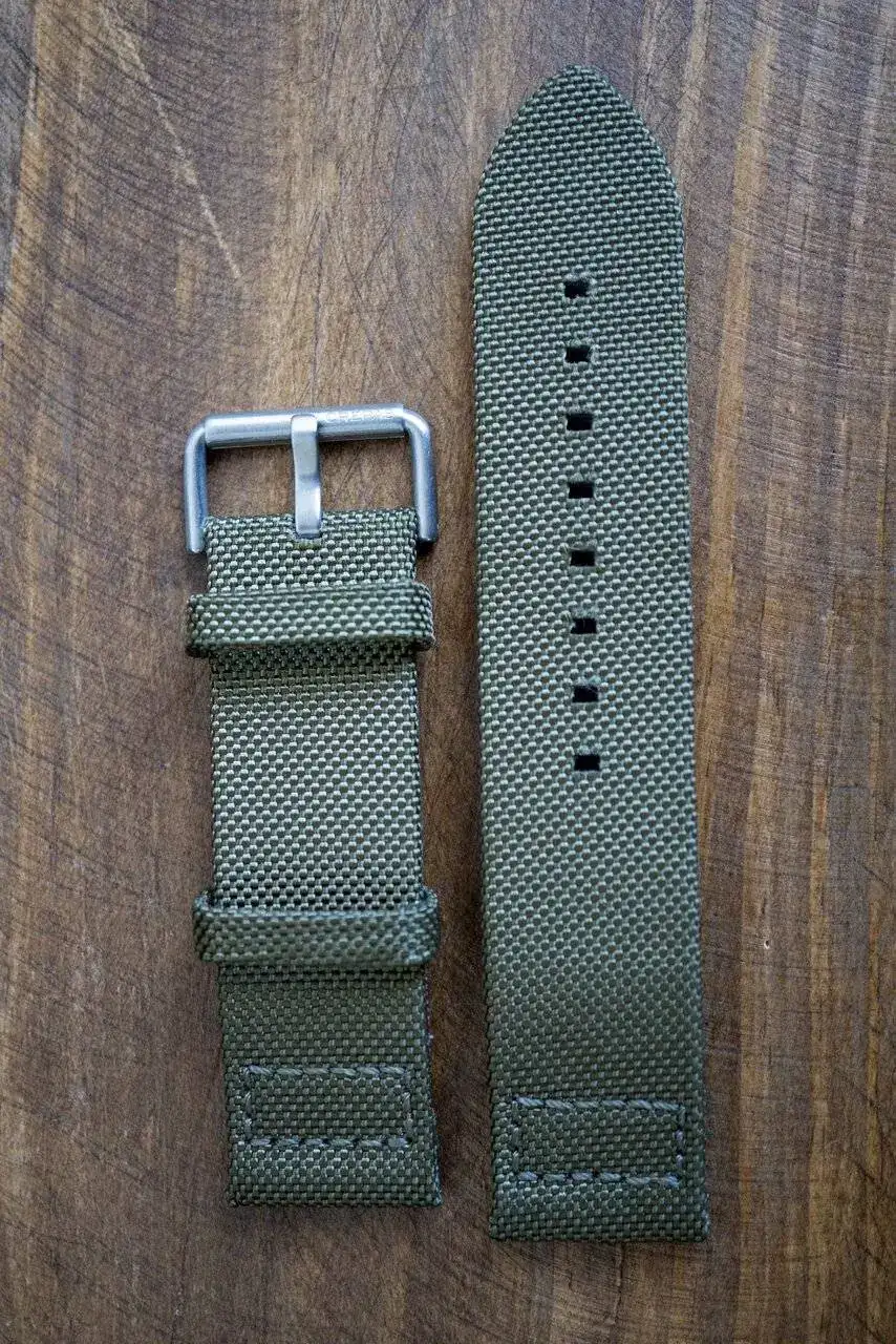 Esta és la correa de nylon que trae de origen con su grabado en la hebilla.