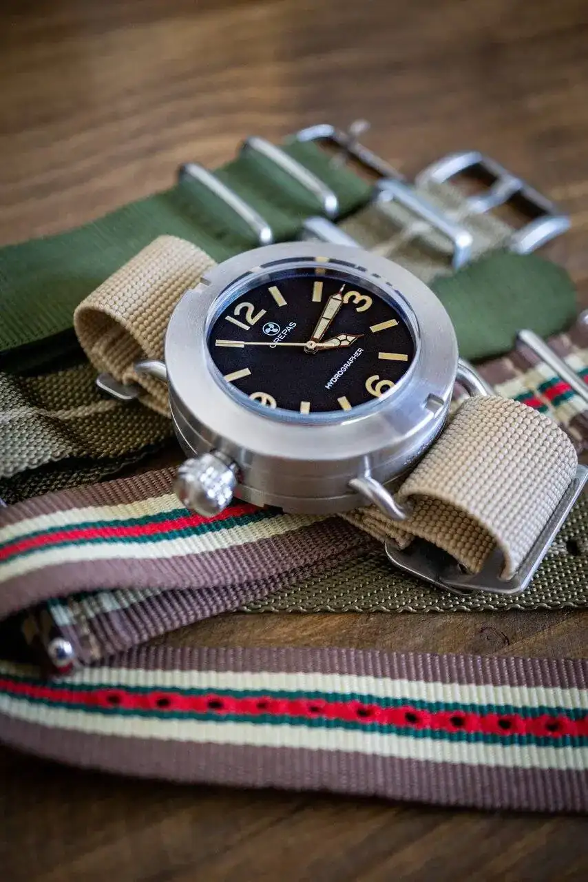 Se trata del CREPAS HYDROGRAPHER 1942m. Fruto de la colaboración entre el blog OceanicTime y CREPAS. El Hydrographer 1942m es un homenaje al famoso Longines HS o Hydrographic Survey Watch, reloj usado por los hombres torpedo de la Royal Navy durante la Segunda Guerra Mundial, algo así como la respuesta aliada a los Panerai italianos.