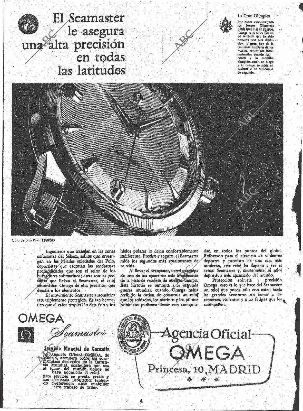 Hoy, hojeando la prensa acabé en la hemeroteca de ABC, donde encontré un anuncio de Omega en un ejemplar de Noviembre de 1959.