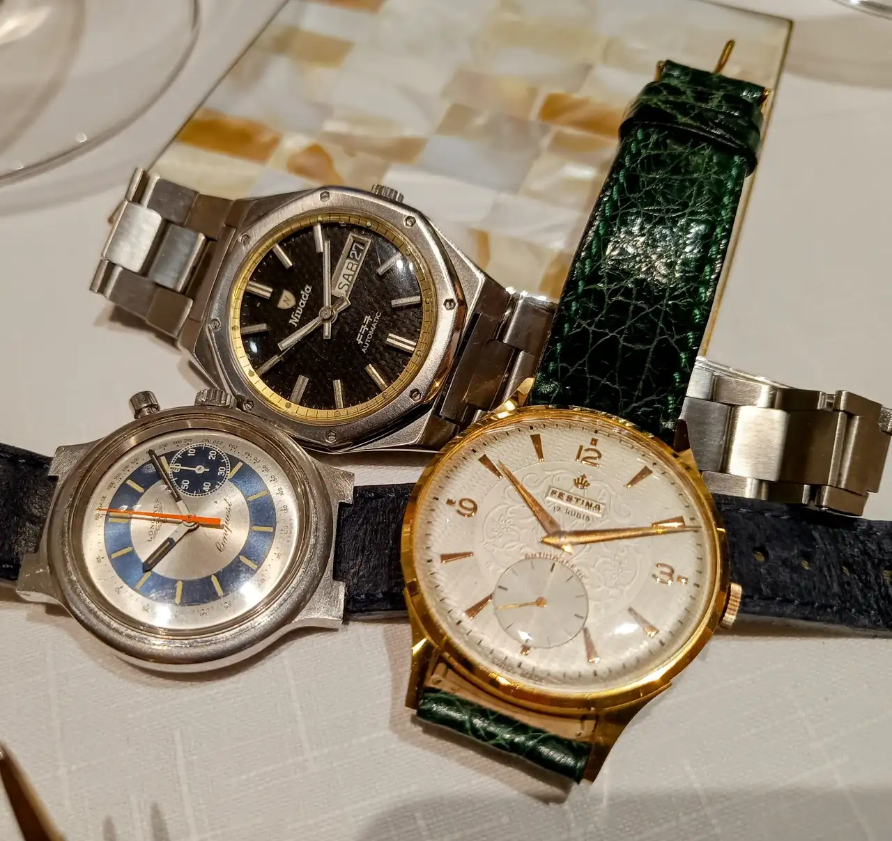 Qué buena pinta de velada. Buenas viandas, buena compañía, preciosos relojes en las muñecas...