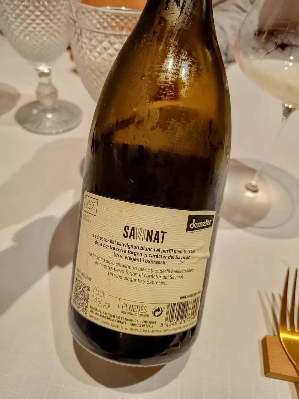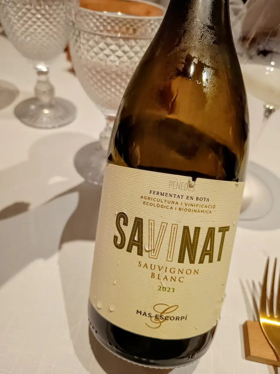 Un sorprendente y fresco sauvignon blanc penedesenc, que iba cambiando conforme cambiaba el plato que acompañaba. Me encantó