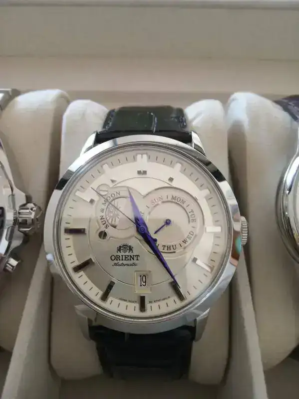 Complicaciones por admirar la ingeniería relojeril, hora, fecha, día de la semana y sol y luna. Es una pasada verlo mover todas estas historias...