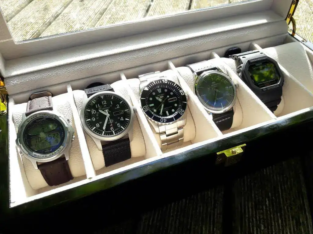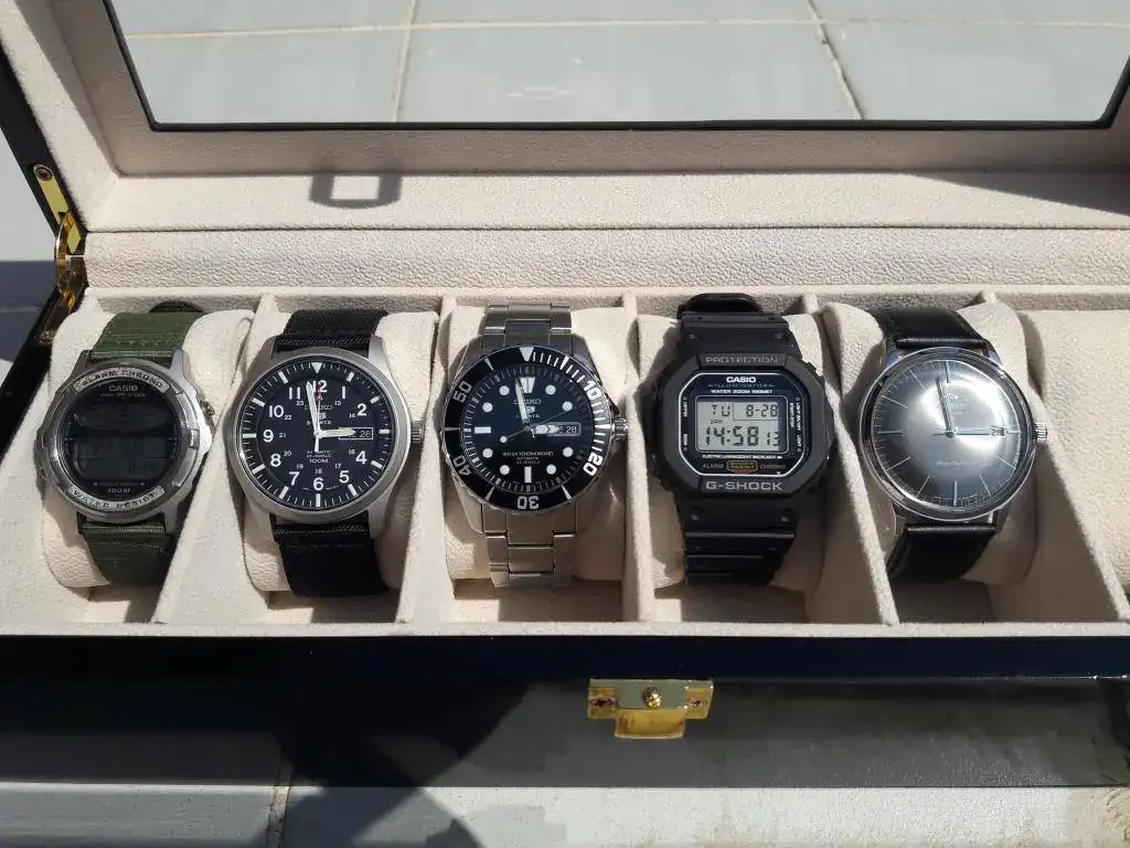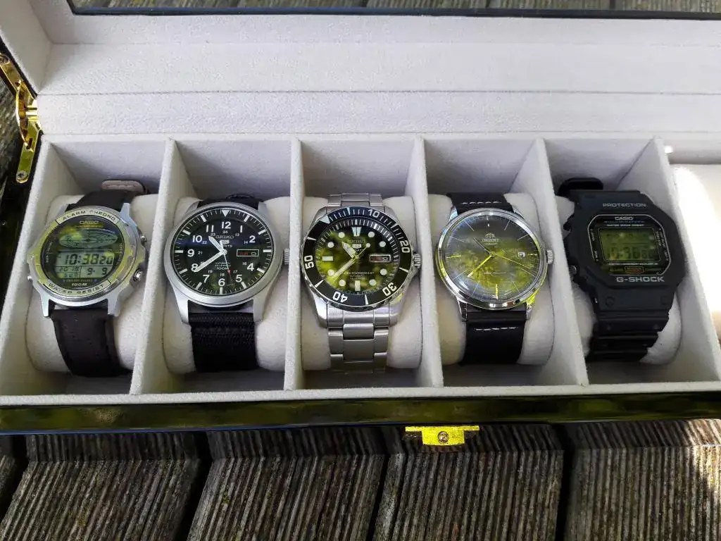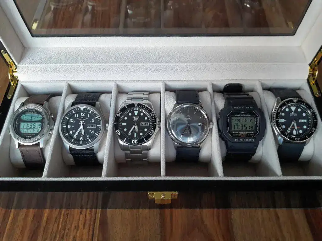 1.- Tengo dos "divers". El recién adquirido SKX007 y el Sea Urchin. Creo que en una caja tan pequeña es redundante y tal vez me plantee sacar el Sea Urchin.