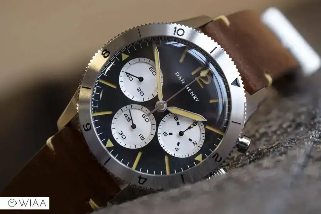 Dan Henry 1963, crono de estética vintage , cuarzo, está dentro de tu presupuesto. Me parece una opción que se complementará bien con tu colección.