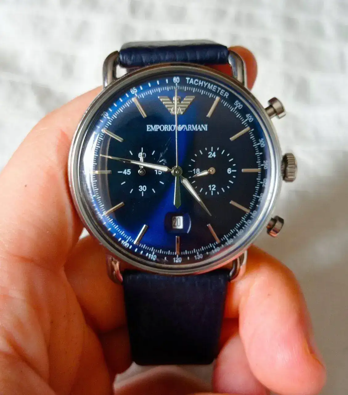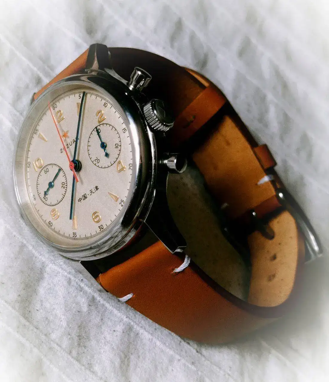 Otro regalo de mi mujer, un crono azul que me encanta, por su color, sus asas y su cristal abombado