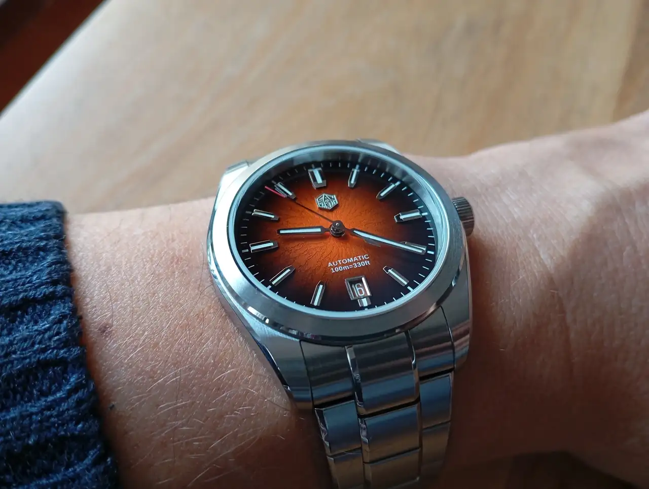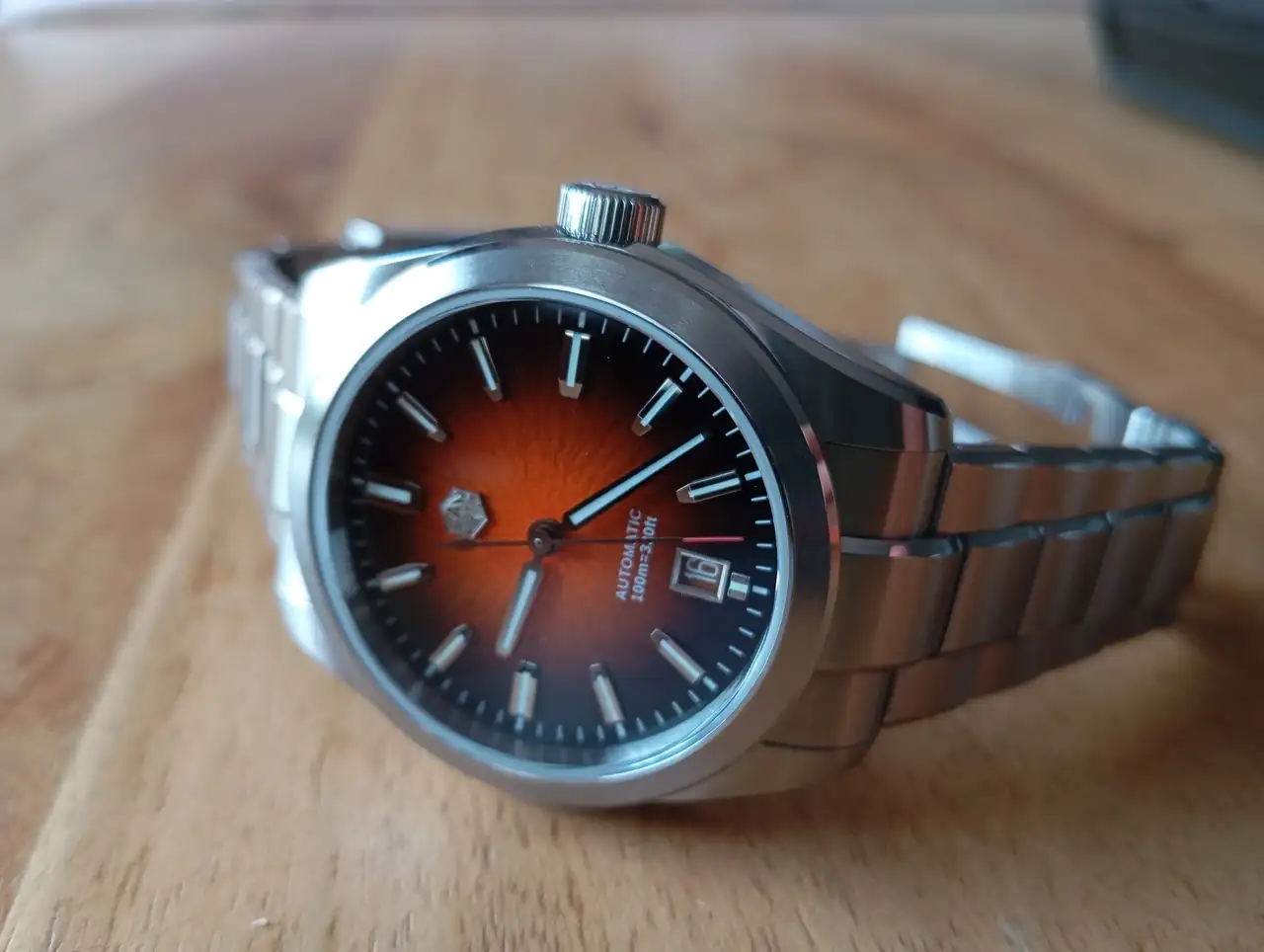 Será mi nuevo GADA, mi nuevo CUCO. Nada más tenerlo en la muñeca te das cuenta de la calidad: excelentes mecanizados, buen lumen, buen zafiro, rosca por aquí y por allá, dial fascinante, índices aplicados perfectamente terminados al igual que las agujas, disco de fecha camuflado, cierre ajustable... Vamos, un virtuoso, jajaja.
