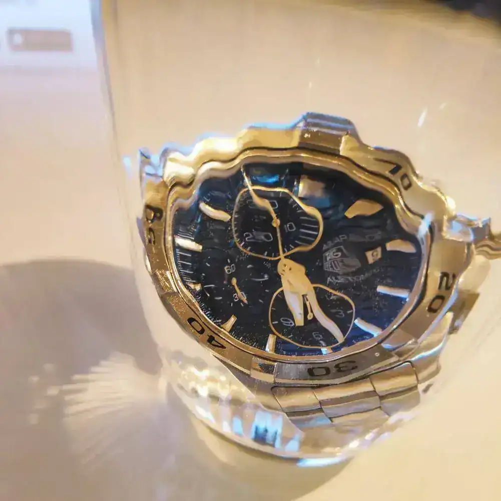 Llegados a este momento no sabía qué hacer, y de casualidad me fui con mi chica al Corte Inglés. Como la cabra tira al monte, pues ahí estábamos en el escaparte de Tag, viendo el Brad y ahí estaba él escondido como agazapándose sin querer ser visto, un fantástico Aquaracer crono precioso, se me caía la baba al verlo y ni corto ni perezoso le dije a la dependienta, por favor quiero probarme este modelo y… flechazo, ni me había llegado plantear este modelo. Si ya sé que un diver no puede ser un crono, que queréis que os diga…rarito que es uno. Vamos que el Brad Pitt se había quedado relegado por el aquaracer.