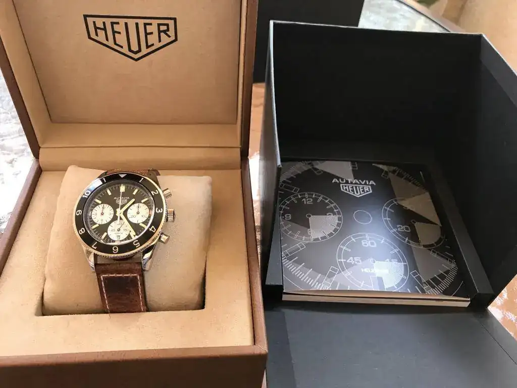 El estuche no es nada del otro mundo, simplemente viene forrado en color marrón con el logo Heuer y un libreto en inglés que tampoco dice mucho. Me esperaba algo especial, para ser sinceros.