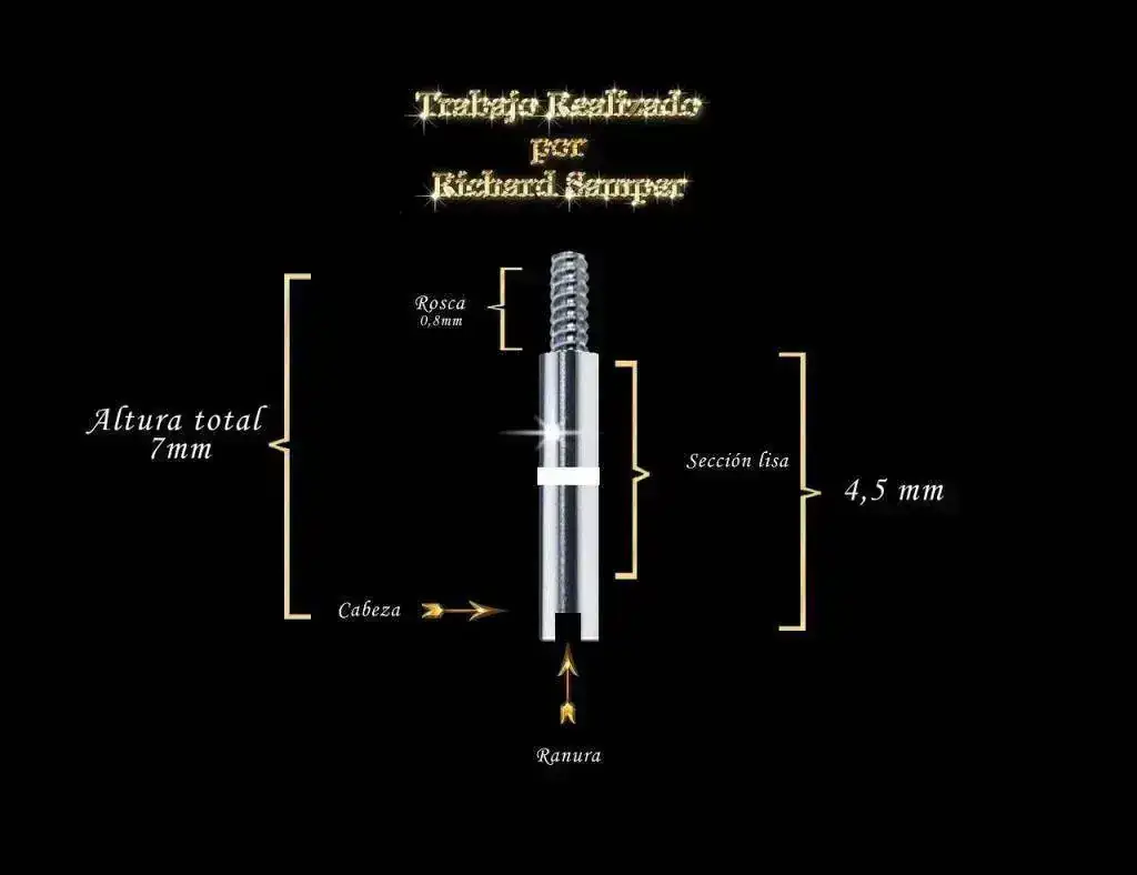 Como podéis ver este tornillo es muy parecido al que vimos en la válvula manual de helio. Las diferencias están en las medidas y en que este modelo tiene una punta. Os invito a ver la imagen sub siguiente.